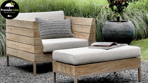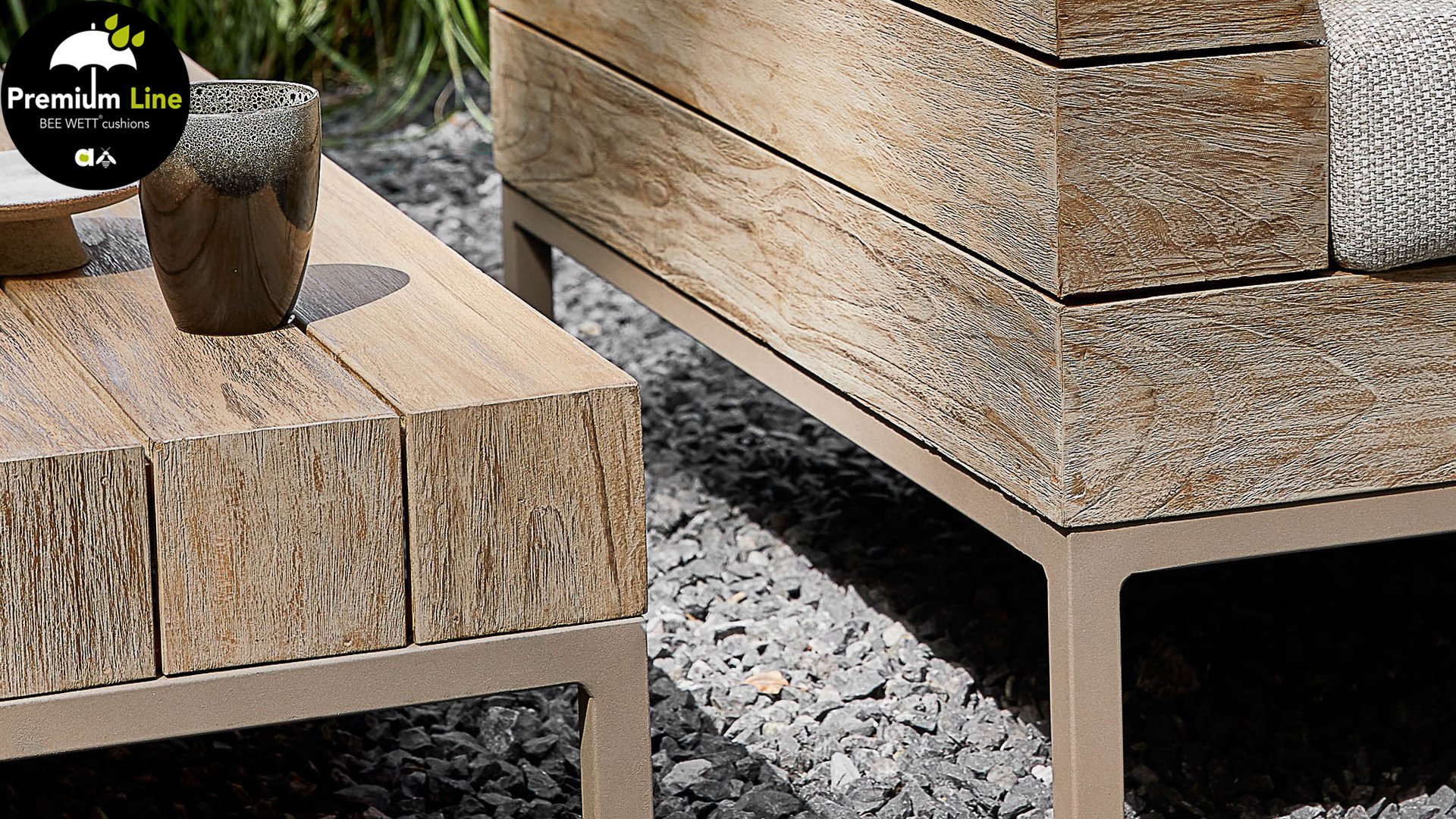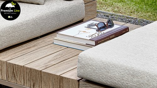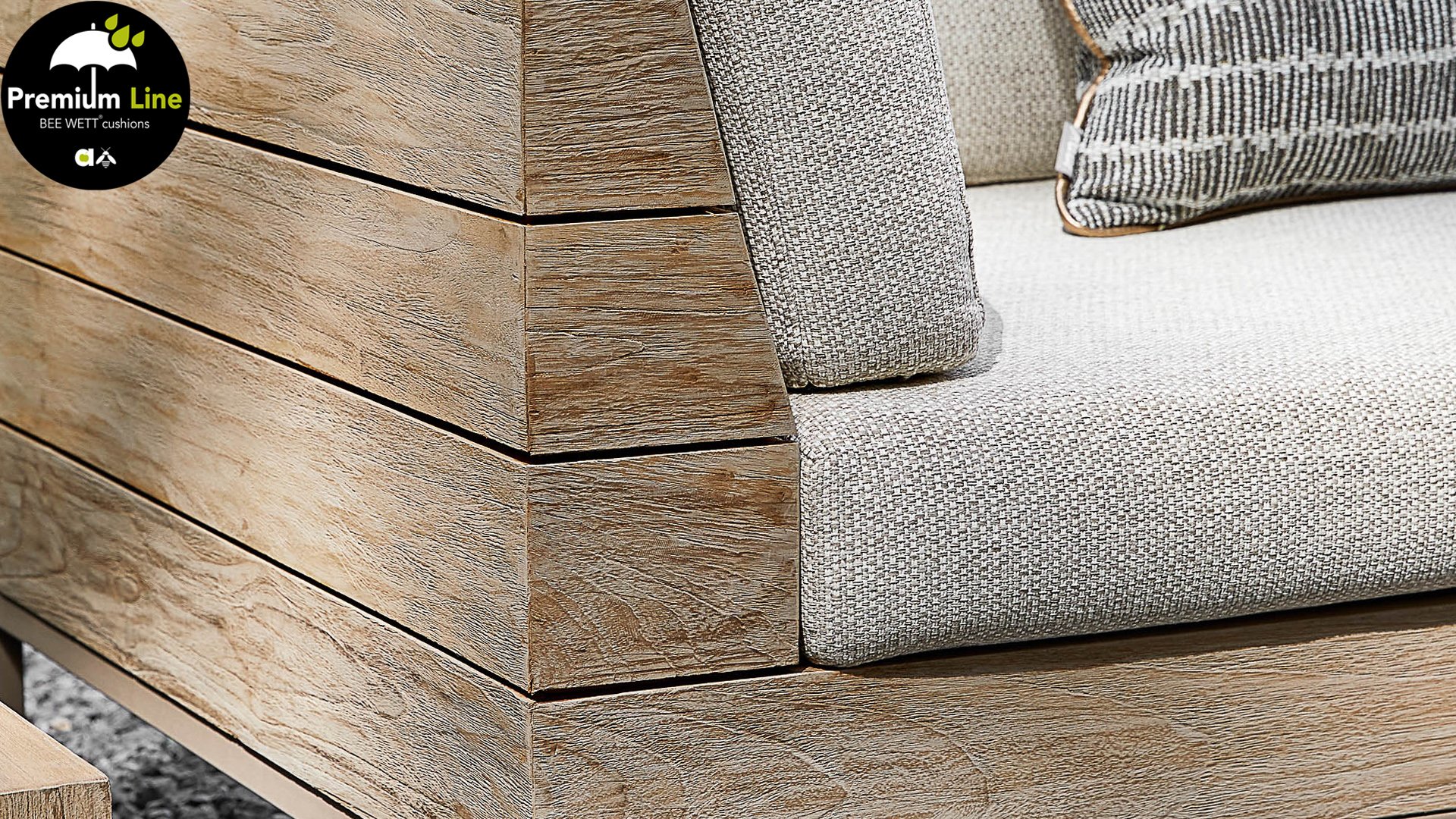 Die Apple Bee Serie Long Island ist zeitlos. Aus robusten Teakholzbalken gefertigt, bleibt dieses Möbel nicht unbemerkt. Das auf dem Teakholz aufgetragene Coastal-Finish verleiht zusätzliche einen sehr stilvollen Charakter und das schlanke Aluminiumgestell verfeinert die Konstruktion. Helle Polster – mit Bee-Wett®-Technologie – harmonieren mit Holz und Metall.