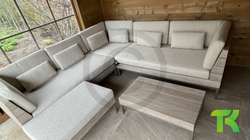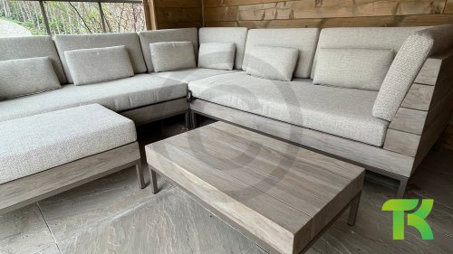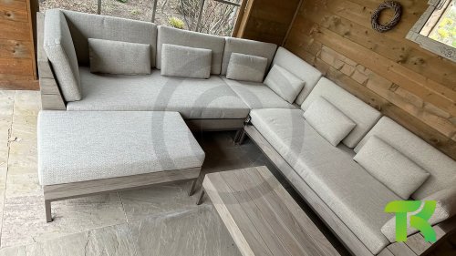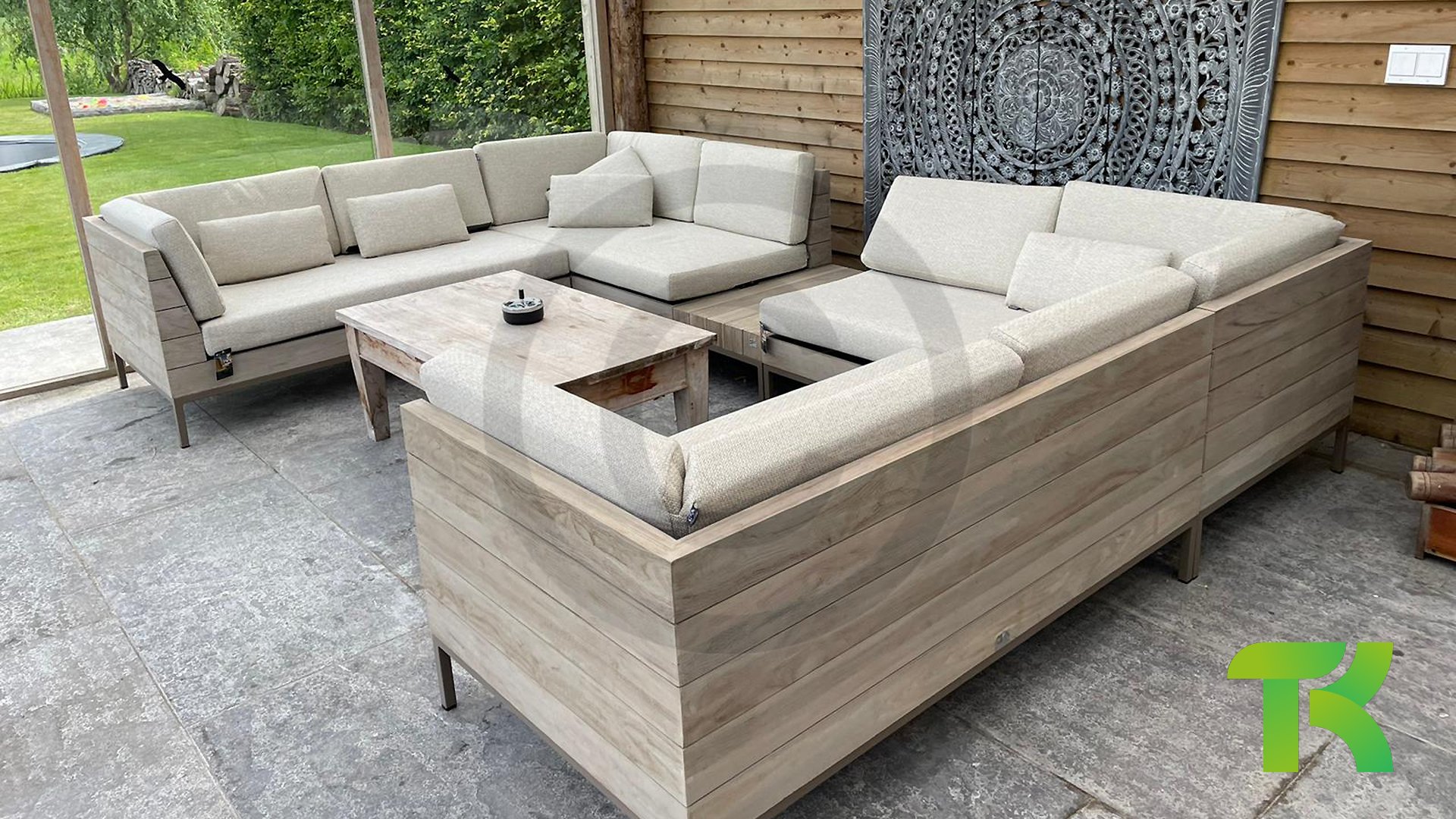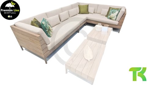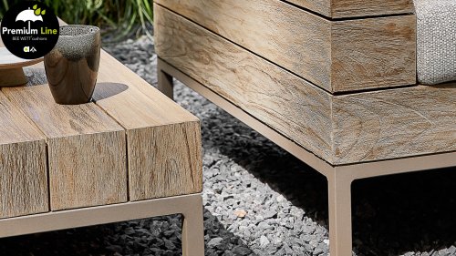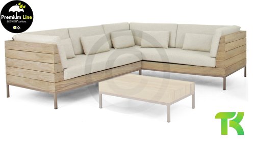 Robuste Teakholz Balken, zusammen geschmolzen in einem Stück zu einem zeitlosen Lounge Möbelstück. Die Applebee Long Islands bleibt sicher nicht unbemerkt in dem Garten oder auf der Terasse, in welcher Aufstellung dann auchimmer! Das auf dem Teakholz angebrachte Coastal -Finish verleiht diesem Set einen sehr stilvollen Charakter. Die schmalen Spalten zwischen den teakhölzernen Latten sorgen für die schönen, modernen Linien, die über das Möbel laufen. Das schlanke Aluminiumgestell an der Unterseite des Loungesets sorgt für einen Kontakt zur robusten Oberseite. Diese Applebee Long Island Lounge ist auch lieferbar in der Farbe Antique-Finish!