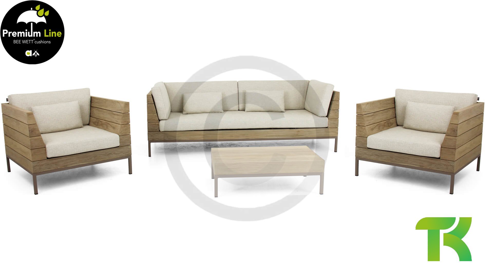 Die Apple Bee Long Island Lounge ist modular und geeignet für große und kleine Konfigurationen. Das Teakholz ist mit einer Coastal-Farbfinish behandelt. Die klaren Linien sind charakteristisch für das Aussehen dieses schönen Sets. Der grob gewebte Stoff verleiht dem Set ein luxuriöses Aussehen und bringt eine Strandatmosphäre in Ihren Garten!