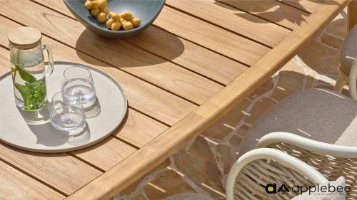 Suchen Sie nach dem perfekten Blickfang für Ihre Terrasse? Dann ist der Esstisch Martinique von Apple Bee genau das Richtige für Sie! Dieser großzügige Esstisch (250 x 110 cm) vereint elegantes, modernes Design mit der unbestrittenen SVLK A-grade Teakholz Klasse. Dieses langlebige und witterungsbeständige Material garantiert jahrelange Freude und entwickelt eine wunderschöne, silbrige Patina.
