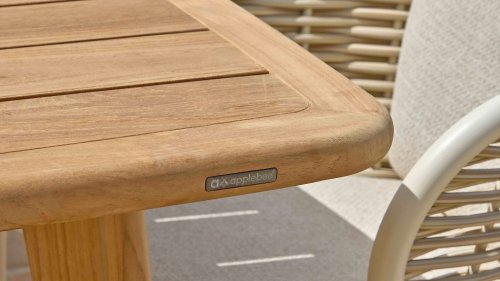 Gartenmöbel aus Teakholz bieten einen atemberaubenden Blick.Teakholz eignet sich besonders gut für den Einsatz im Außenbereich. Es ist resistent gegen Schädlinge und Pilze und widerstandsfähig gegen Sonne, Regen und Schnee. Mit der Zeit entwickelt das Teakholz eine silbergraue Patina. Gartenmöbel aus Teakholz bieten einen atemberaubenden Blick. Darüber hinaus ist es starkes Material und erfordert nur wenig Wartung. Wer die ursprüngliche Farbe des Teakholzes bevorzugt, kann durch regelmäßiges benutzen unser Pflegemittel ganz einfach das Vergrauen des Holzes verhindern.Darüber hinaus können Sie Teak mit grüner Seife reinigen. Durch Temperaturunterschiede und durch den Wechsel von Feuchtigkeit und Trockenheit können kleine Haarrisse entstehen. Es ist üblich, dass Man in dies Unvollkommenheiten findet, diese Unregelmäßigkeiten sind kennzeichnend für dieses Produkt. Diese Unregelmäßigkeiten können nie einen Anlass zu Reklamation, Garantie oder Claim formen. Es betrifft eine Unterschrift von Originalität!  Wir gewähren Garantie auf alle Produktions- und Konstruktionsfehler. Die Wirkung von Teakholz ist nicht enthalten. Wenn Sie sich für Teakholz entscheiden, erwarten wir, dass Sie diese Eigenschaften zu schätzen wissen. Eventuell auftretende Haarrisse, Äste im Teakholz und raue Oberflächen im Laufe der Zeit fallen nicht unter unsere Garantie. Diese Eigenschaften verleihen dem Teakholz seinen eigenen Charakter und sind Teil der Optik. Seien Sie vorsichtig mit einem Blumentopf oder einer Vase auf Ihrem Gartentisch aus Teakholz, da dies zu hartnäckigen Kreisen oder Farbunterschieden führen kann.