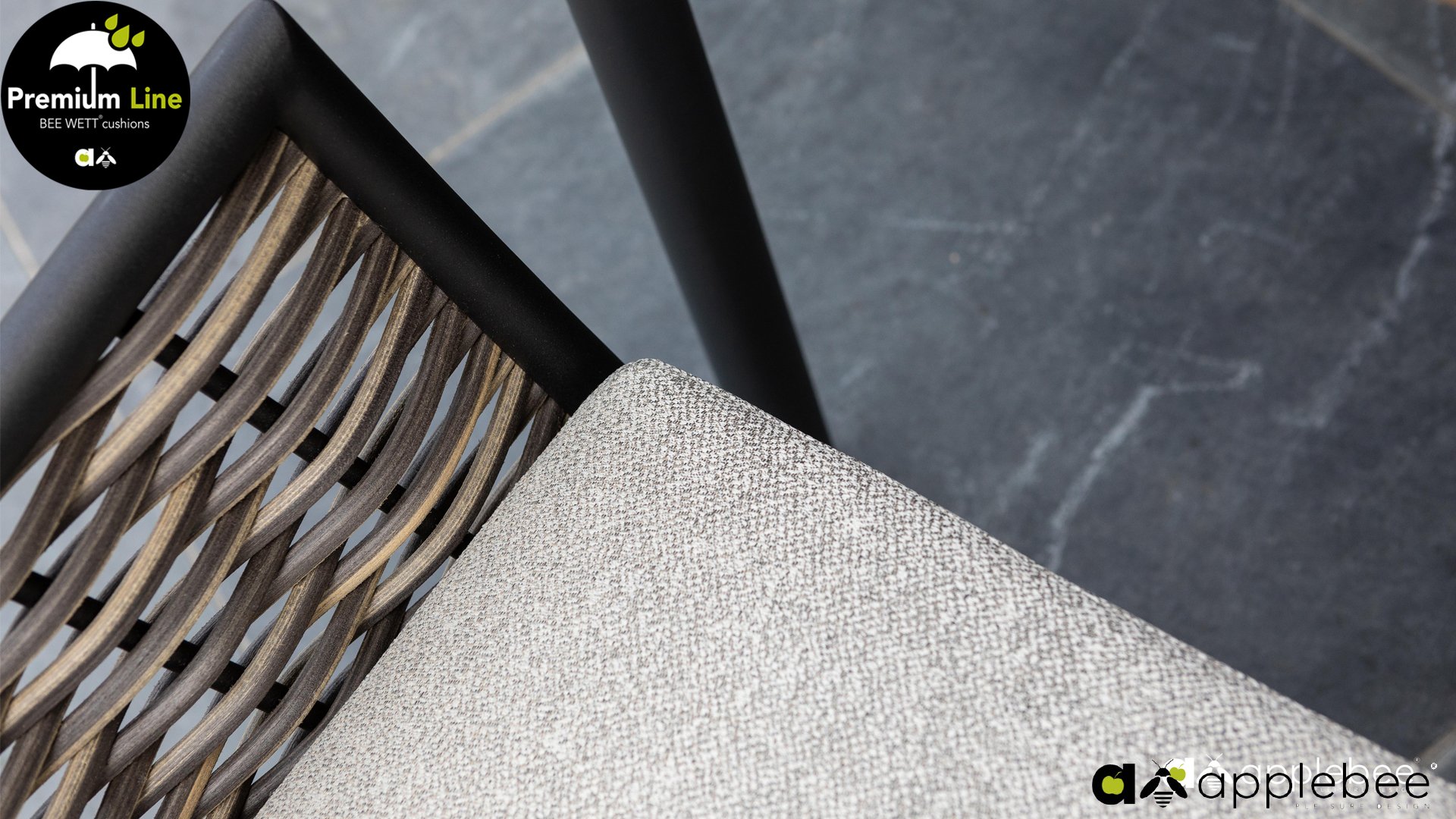 AppleBee Bee Wett sind spezielle wetterfeste Kissen die natürlich draußen liegen bleiben können. Die abnehmbaren Hüllen werden aus den besten möglichen Stoffen hergestellt und sind alle waschbar auf 30°C. Der Stoff ist zusätzlich wasserabstoßend und garantiert UV-beständig. Eine offenes Gewebe an der Unterseite der Kissen sorgt für eine perfekte Drainage. Der Vorteil, dass die Bee Wett Kissen und Polster unglaublich viel schneller trocknen als vergleichbare andere Kissen. Das Stoff hat eine gute Beständigkeit gegen Verfaulen und Stockflecken und darüber hinaus UV-beständig, weich, komfortabel und feuchtigkeitsabstoßend ist. Die Polster sind ausziehbar und waschbar.