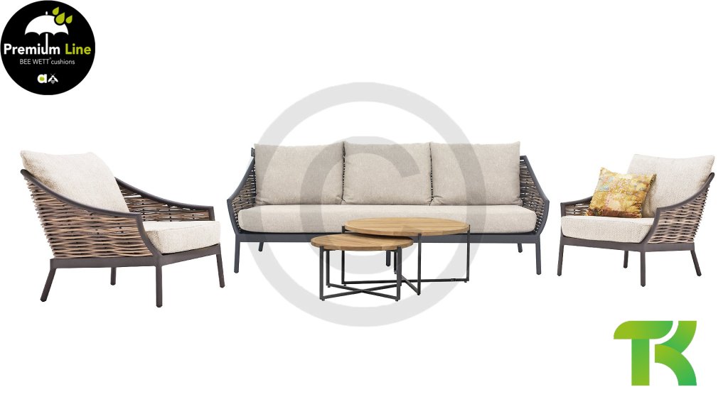 | Materialien Loungegruppe | Pulverbeschichtet Aluminium/Stahl, Geflecht |