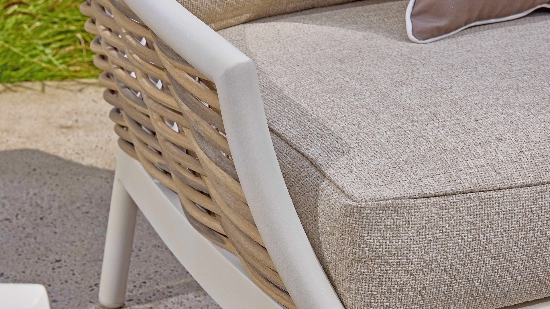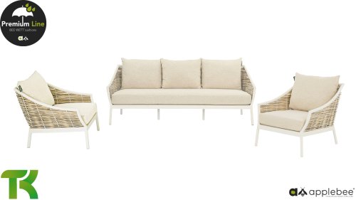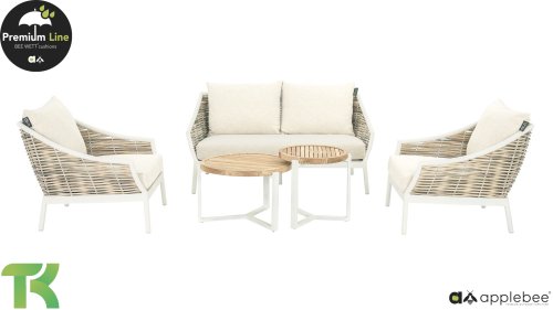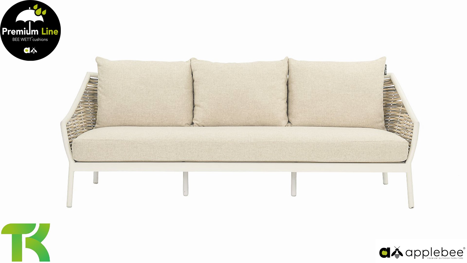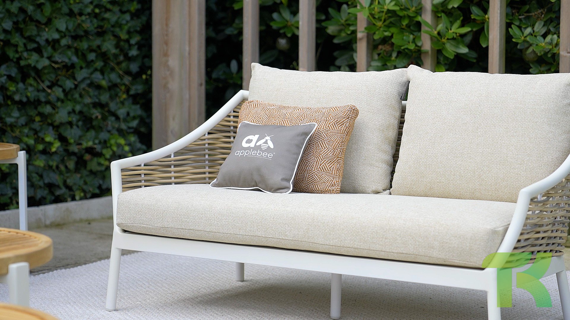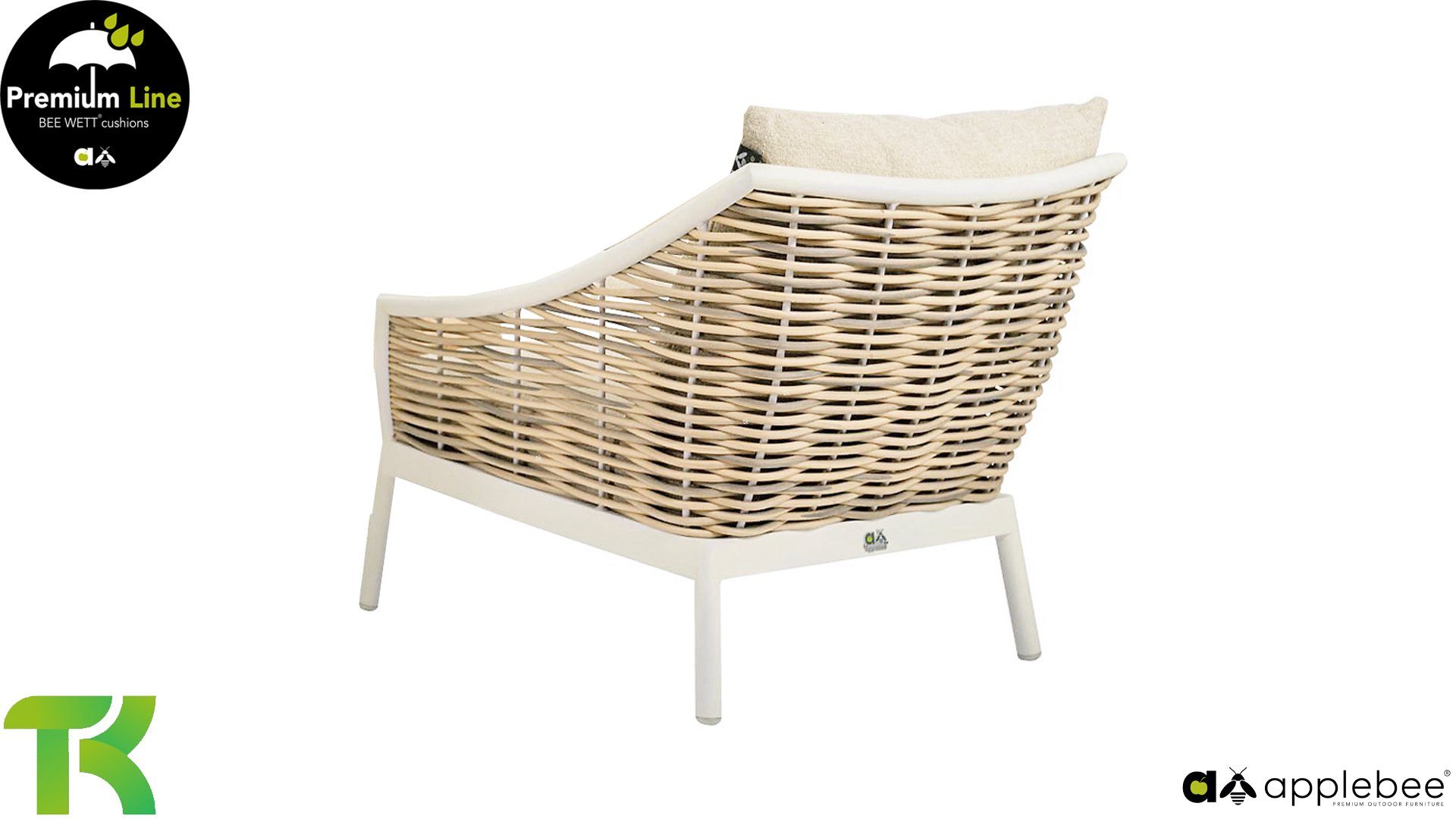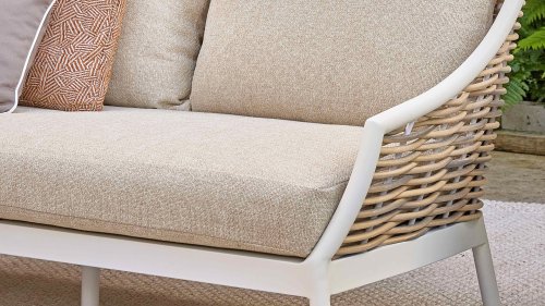 Dank seiner komfortablen Größe ist das Applebee Milou Oyster Sofa perfekt für Balkon oder kleinere Terrasse. Milou ist ein weiteres echtes Original-Designstück von Applebee, das die Kollektion bereichert! Die Premium-Kissen sind mit der Bee Wett®-Technologie ausgestattet, die für schnelles Trocknen nach einem starken Regenschauer sorgt. So können Sie die Kissen einfach draußen lassen. Die Drainage an der Unterseite der Kissen lässt Wasser problemlos ablaufen. Dank seiner großzügigen Größe lädt es zum Entspannen und Genießen ein. Das weiße Applebee Milou Lounge-Set ist daher ideal zum Wohlfühlen. Das extrem dicke Flechtgarn erfordert eine spezielle Flechttechnik, die nur von den besten Flechtern beherrscht wird. Diese Kunsthandwerker flechten jedes Garn einzeln von Hand. Mit dem Applebee Milou Lounge-Set holen Sie sich ein wahres Meisterwerk der Handwerkskunst in Ihr Zuhause.