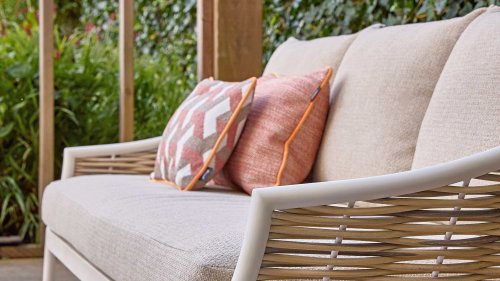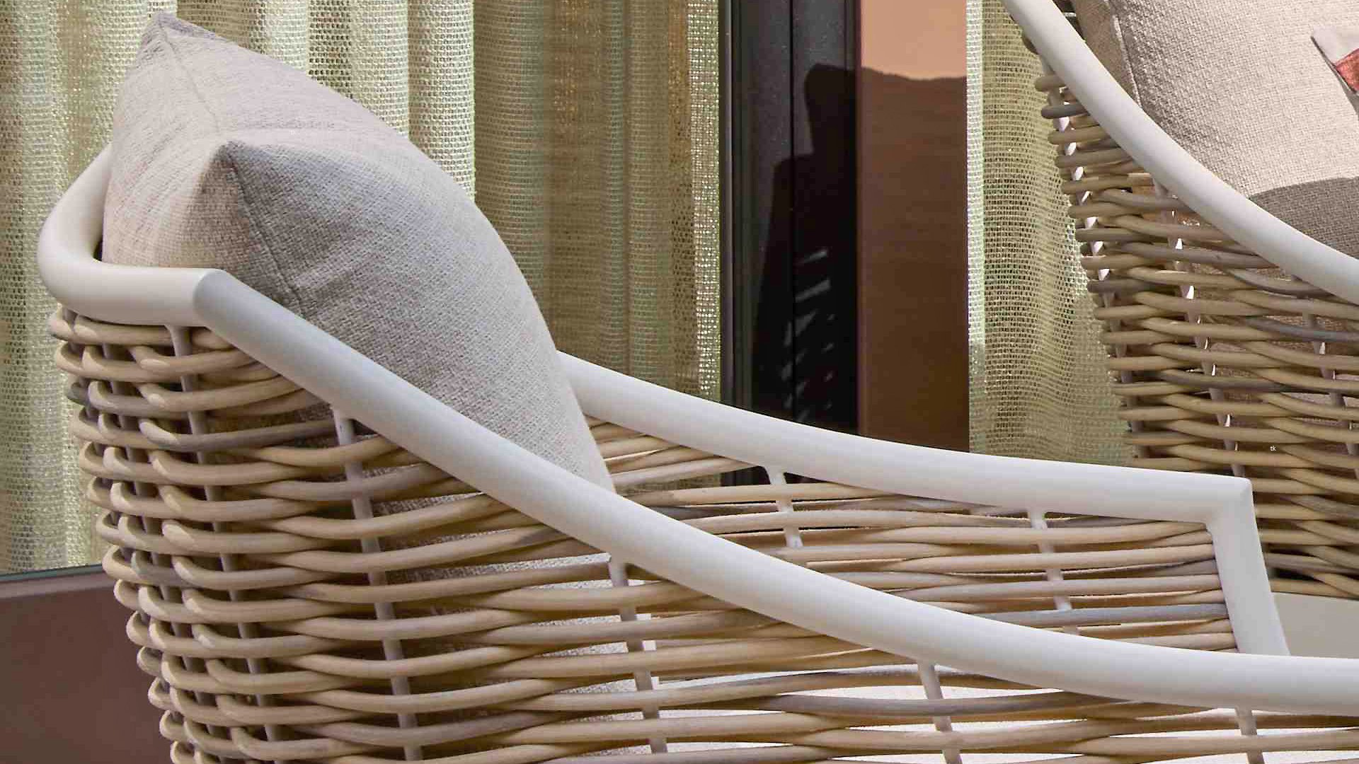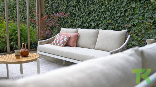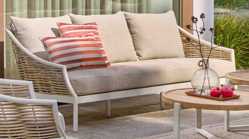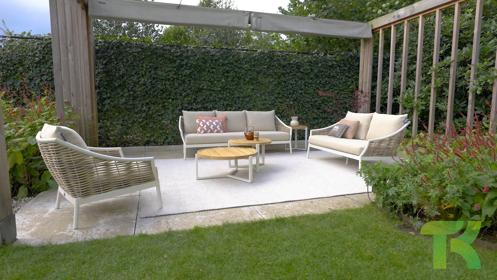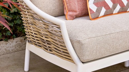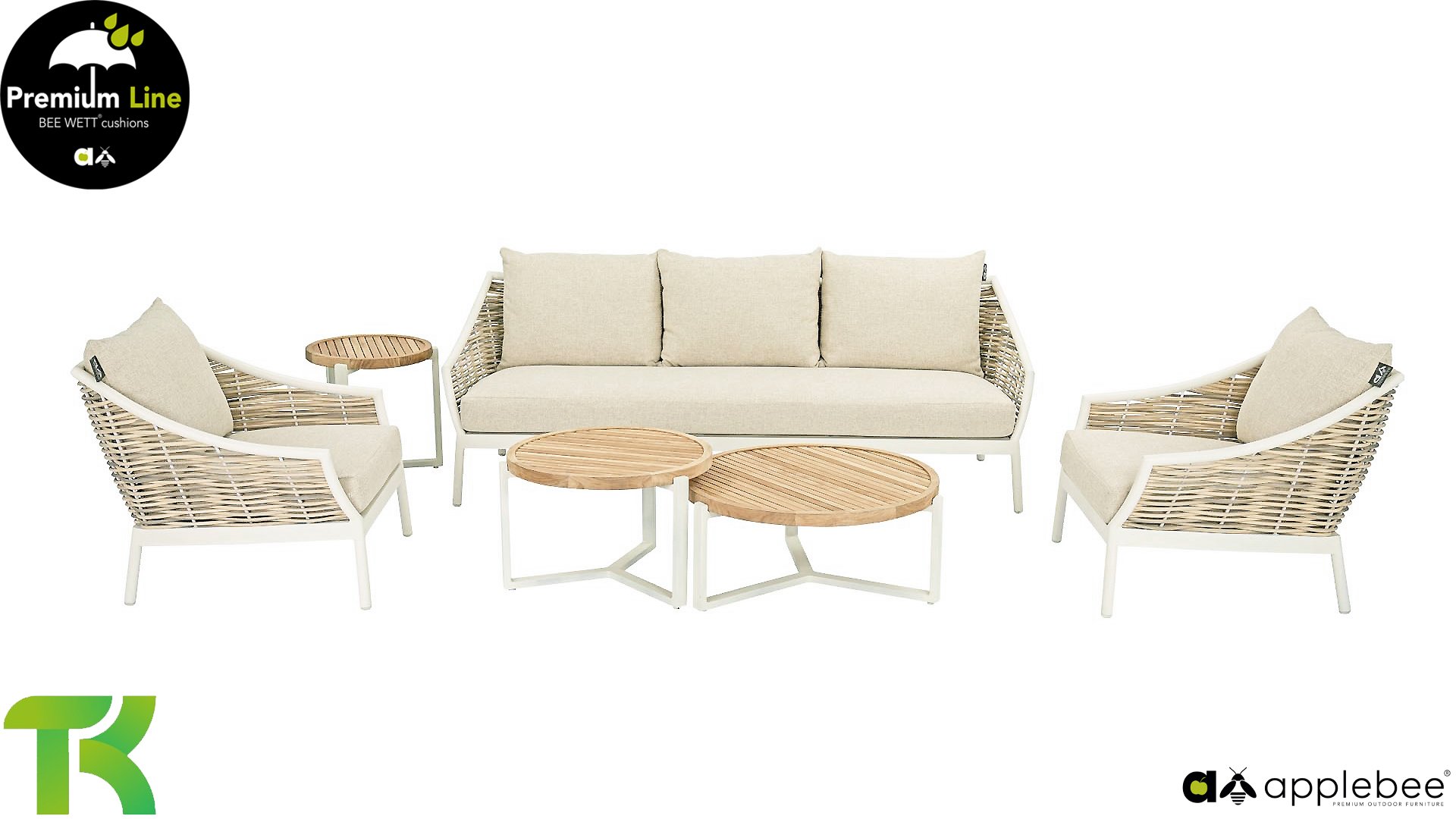 Dank seiner komfortablen Größe ist das Applebee Milou Oyster Sofa perfekt für Balkon oder kleinere Terrasse. Milou ist ein weiteres echtes Original-Designstück von Applebee, das die Kollektion bereichert! Die Premium-Kissen sind mit der Bee Wett®-Technologie ausgestattet, die für schnelles Trocknen nach einem starken Regenschauer sorgt. So können Sie die Kissen einfach draußen lassen. Die Drainage an der Unterseite der Kissen lässt Wasser problemlos ablaufen. Dank seiner großzügigen Größe lädt es zum Entspannen und Genießen ein. Das weiße Applebee Milou Lounge-Set ist daher ideal zum Wohlfühlen. Das extrem dicke Flechtgarn erfordert eine spezielle Flechttechnik, die nur von den besten Flechtern beherrscht wird. Diese Kunsthandwerker flechten jedes Garn einzeln von Hand. Mit dem Applebee Milou Lounge-Set holen Sie sich ein wahres Meisterwerk der Handwerkskunst in Ihr Zuhause.