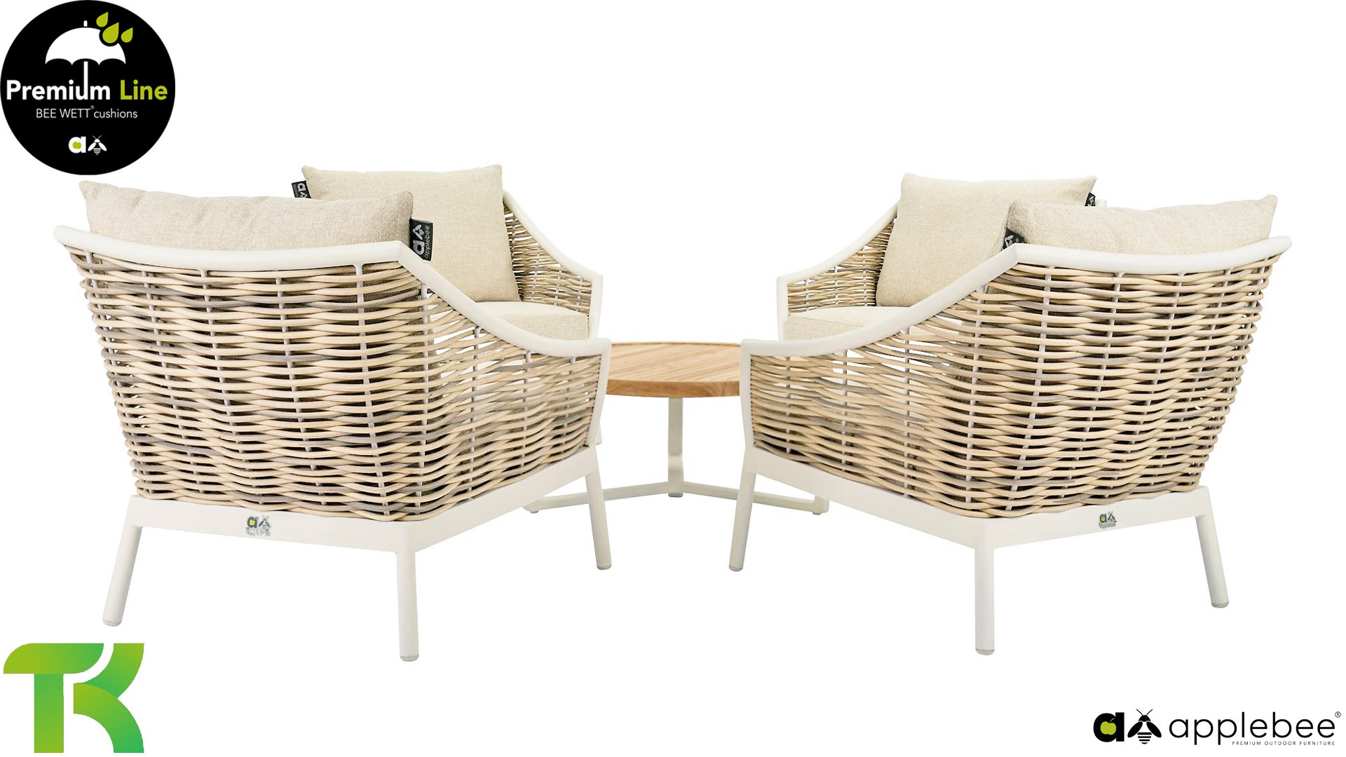 Der Mädchenname Milou bedeutet sanft und freundlich. Das trifft auf das neue Schmuckstück der Apple Bee Kollektion perfekt zu. Das Flechtwerk des Apple Bee Milou Oyster Lounge-Sets wirkt wie Weide – naturgetreu und dennoch mit der gewohnt robusten Biculair®-Outdoorqualität von Apple Bee. Das Flechtwerk wird von einem pulverbeschichteten Rahmen in Austernfarbe mit geschwungenen Linien eingefasst, der dem Milou Lounge-Set seinen schicken, modernen Look verleiht. Während der Rahmen üblicherweise unter dem Flechtwerk verborgen ist, hat Designer Sako Wijma es beim Milou gekonnt in den Rahmen integriert und so sichtbar gemacht. Das macht das Möbelstück noch attraktiver. Das Milou ist auch in anderen Ausführungen erhältlich; siehe hier: Apple Bee Milou Black Lounge-Set / Apple Bee Milou Black Garden-Set / Apple Bee Milou Oyster Lounge-Set / Apple Bee Milou Oyster Garden-Set.