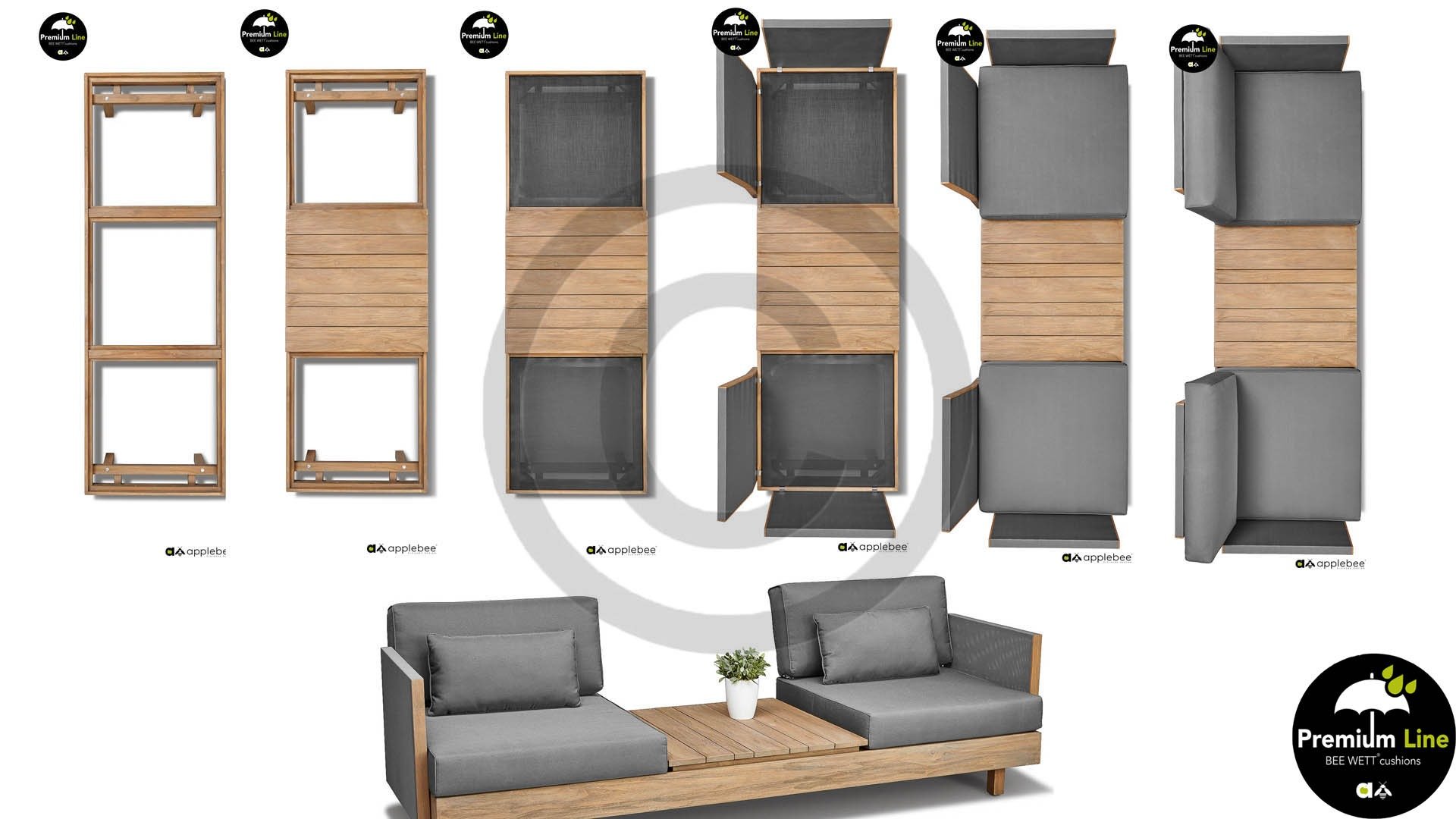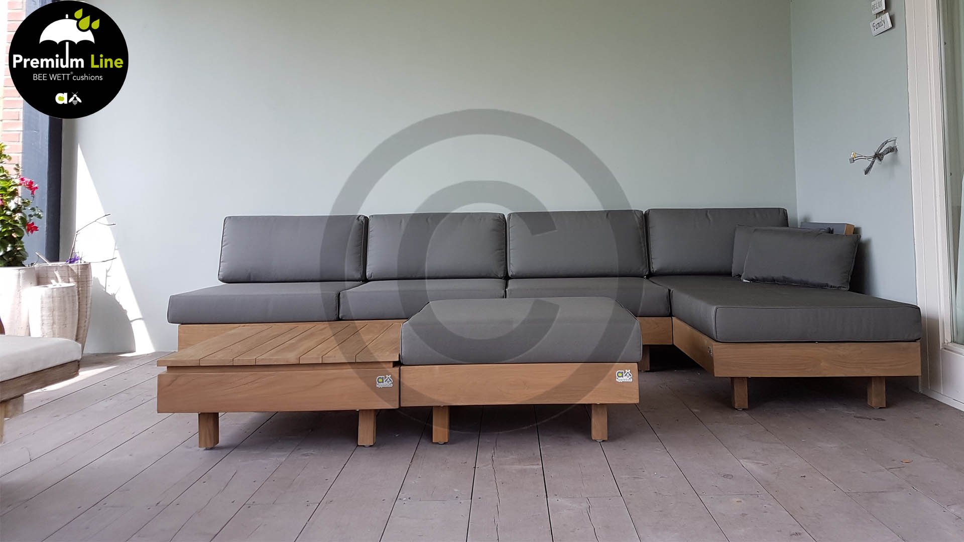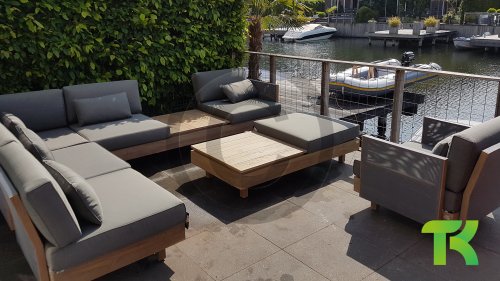 Das Loungeset besteht aus extrem starken Teakholz, das mit einem sogenannten "Antique-Finish" bearbeitet wurde. Dies verleiht Ihrem Möbel einen warmen und einzigartigen Look. Alle Kissen verfügen über einen ausgezeichneten Sitzkomfort. Außerdem sind die Sitz- und Rückenkissen mit der Bee Wett Technologie versehen, die dafür sorgt, dass der Schaum keine Feuchtigkeit aufnimmt. Das offene Gewebe an der Unterseite des Kissens sorgt zudem für eine perfekte Ableitung der Feuchtigkeit. Die Feuchtigkeit läuft durch das Kissen und bleibt dort nicht hängen. Hierdurch sind Ihre Bee Wett Kissen viel schneller trocken und vor Schimmeln und Schmutz geschützt. Applebee Module X lounge ist auch in der Farbe Coastal Lieferbar!
