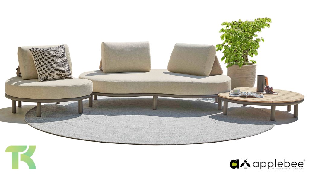 Das Apple Bee Moon Island Lounge-Set bricht mit den traditionellen, geradlinigen Formen von Gartenmöbeln. Die weichen, abgerundeten Konturen verleihen Ihrer Terrasse sofort ein modernes und einladendes Ambiente. Das Besondere an diesem Set ist seine absolute Bewegungsfreiheit: Die Rückenlehnen sind nicht am Gestell befestigt. Dank der beschwerten Rückenlehne bleiben die stilvollen, braunen Rückenlehnen fest an ihrem Platz und verrutschen nicht. So können Sie Ihre bevorzugte Sitzposition ganz individuell gestalten: direkt gegenüber für eine angenehme Unterhaltung oder quer über das Sofa für pure Entspannung.