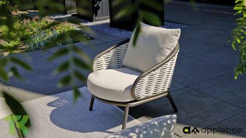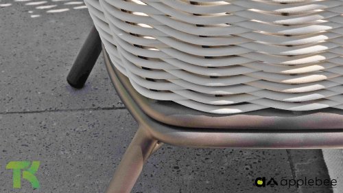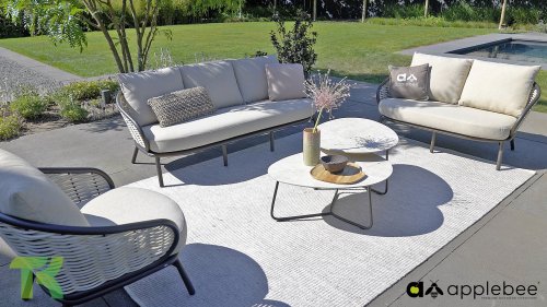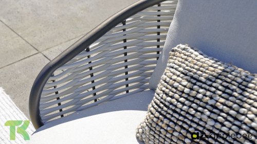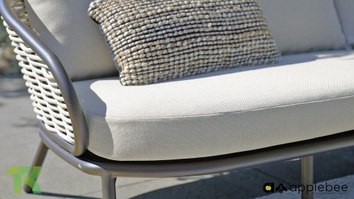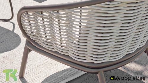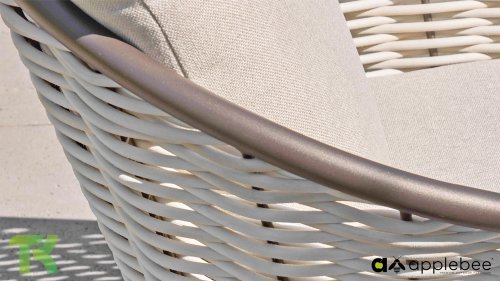 Apple Bee zeichnet sich durch die Verwendung des speziellen Biculair®-Geflechts aus, das ursprünglich für den professionellen Einsatz im Gastgewerbe entwickelt wurde. Dieses Biculair®-Geflecht ist eine naturgetreue und nachhaltige Alternative zu Rattan. Die äußerst strapazierfähige synthetische Rattanfaser (HDPE) ist absolut wetterfest, farbecht, recycelbar und somit eine umweltfreundliche Wahl. Aussehen und Funktionalität der Möbel bleiben von den europäischen Witterungsbedingungen unbeeinträchtigt, und die Farben behalten ihre natürliche Leuchtkraft. Die überlegene Qualität dieses Geflechts, bestätigt von der Niederländischen Organisation für Angewandte Naturwissenschaftliche Forschung (TNO), zeigt sich deutlich im Vergleich zu anderen vergleichbaren Materialien.