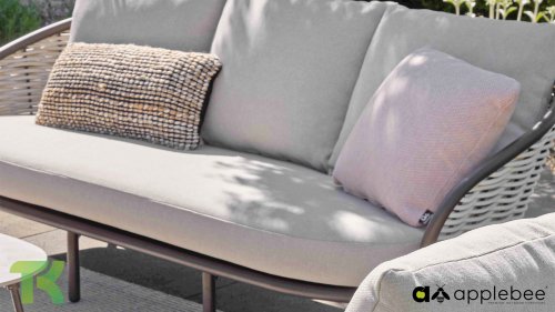 AppleBee Bee Wett sind spezielle wetterfeste Kissen die natürlich draußen liegen bleiben können. Die abnehmbaren Hüllen werden aus den besten möglichen Stoffen hergestellt und sind alle waschbar auf 30°C. Der Stoff ist zusätzlich wasserabstoßend und garantiert UV-beständig. Eine offenes Gewebe an der Unterseite der Kissen sorgt für eine perfekte Drainage. Der Vorteil, dass die Bee Wett Kissen und Polster unglaublich viel schneller trocknen als vergleichbare andere Kissen. Das Stoff hat eine gute Beständigkeit gegen Verfaulen und Stockflecken und darüber hinaus UV-beständig, weich, komfortabel und feuchtigkeitsabstoßend ist. Die Polster sind ausziehbar und waschbar.