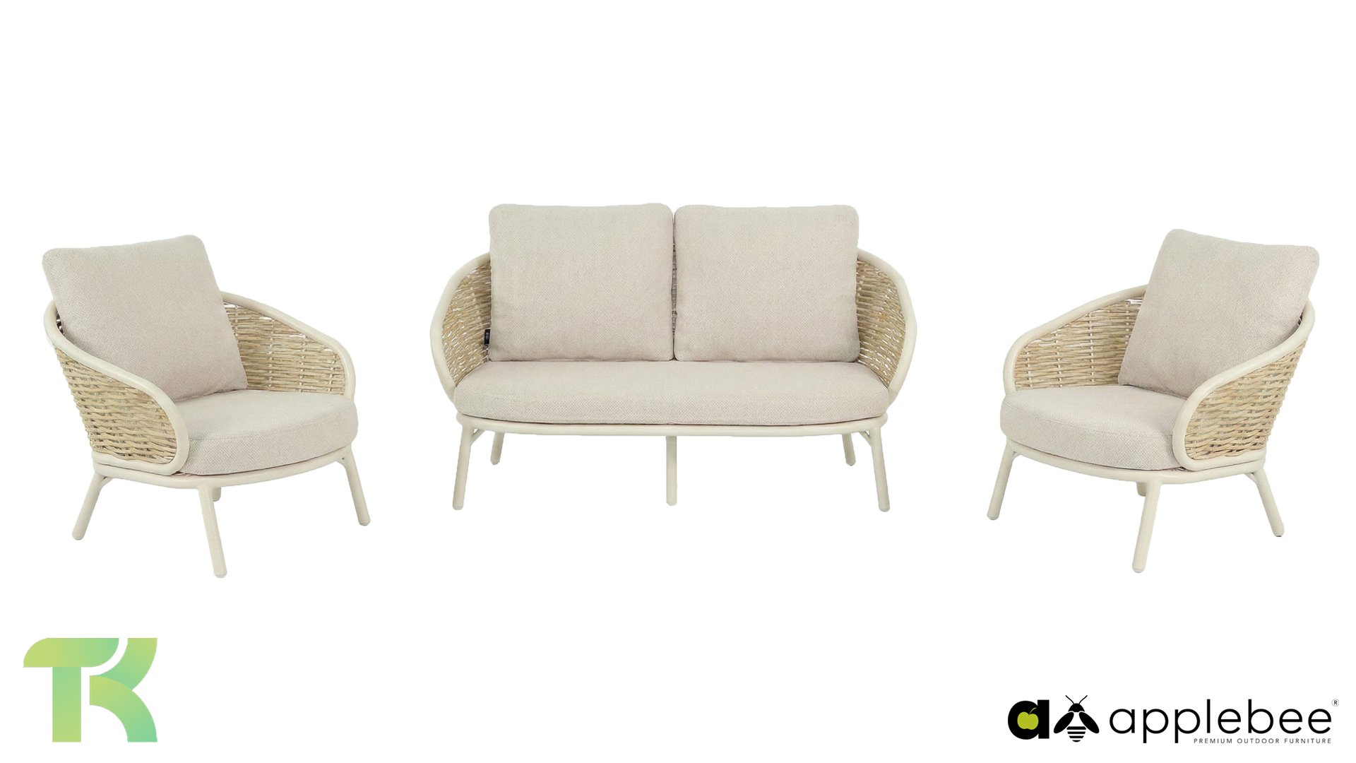 Apple Bee zeichnet sich durch die Verwendung des speziellen Biculair®-Geflechts aus, das ursprünglich für den professionellen Einsatz im Gastgewerbe entwickelt wurde. Dieses Biculair®-Geflecht ist eine naturgetreue und nachhaltige Alternative zu Rattan. Die äußerst strapazierfähige synthetische Rattanfaser (HDPE) ist absolut wetterfest, farbecht, recycelbar und somit eine umweltfreundliche Wahl. Aussehen und Funktionalität der Möbel bleiben von den europäischen Witterungsbedingungen unbeeinträchtigt, und die Farben behalten ihre natürliche Leuchtkraft. Die überlegene Qualität dieses Geflechts, bestätigt von der Niederländischen Organisation für Angewandte Naturwissenschaftliche Forschung (TNO), zeigt sich deutlich im Vergleich zu anderen vergleichbaren Materialien.