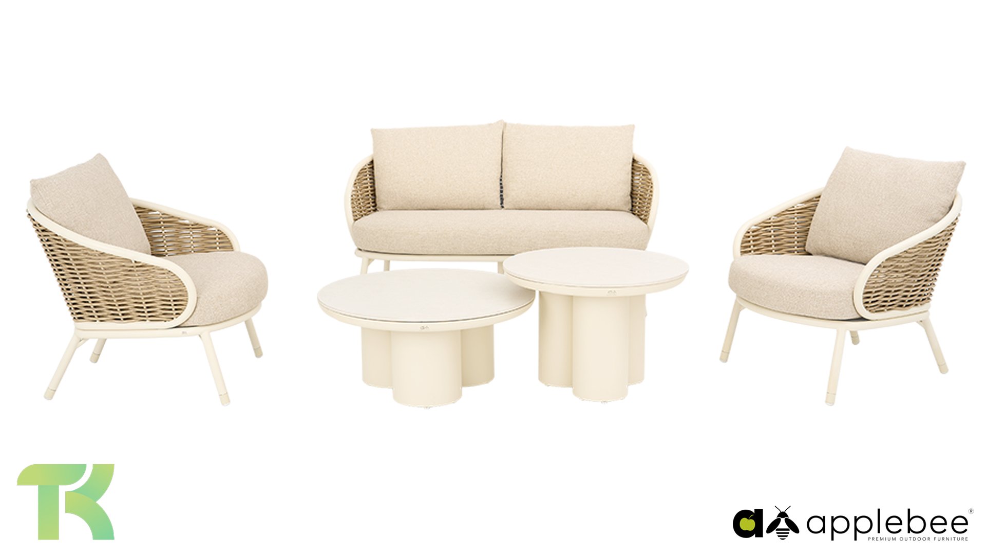 Apple Bee zeichnet sich durch die Verwendung des speziellen Biculair®-Geflechts aus, das ursprünglich für den professionellen Einsatz im Gastgewerbe entwickelt wurde. Dieses Biculair®-Geflecht ist eine naturgetreue und nachhaltige Alternative zu Rattan. Die äußerst strapazierfähige synthetische Rattanfaser (HDPE) ist absolut wetterfest, farbecht, recycelbar und somit eine umweltfreundliche Wahl. Aussehen und Funktionalität der Möbel bleiben von den europäischen Witterungsbedingungen unbeeinträchtigt, und die Farben behalten ihre natürliche Leuchtkraft. Die überlegene Qualität dieses Geflechts, bestätigt von der Niederländischen Organisation für Angewandte Naturwissenschaftliche Forschung (TNO), zeigt sich deutlich im Vergleich zu anderen vergleichbaren Materialien.