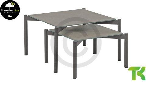 1 x Apple Bee St. Lucia Kaffeetisch 53x53xH30cm Aluminium Quartz-Keramik Travetino