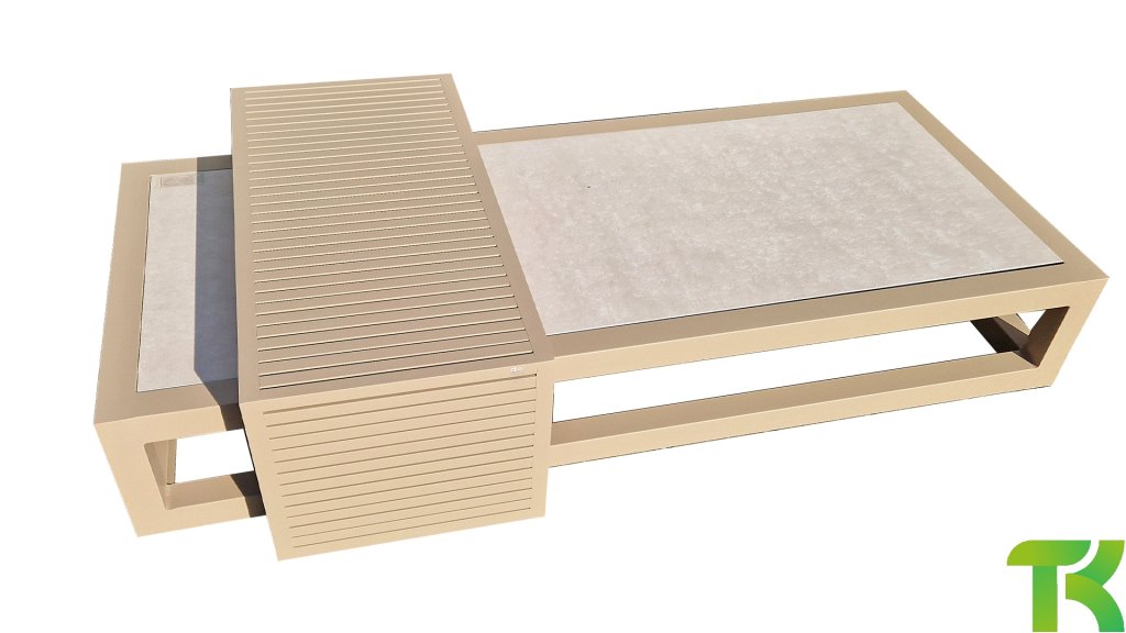 1 x AppleBee Santorini Kaffeetisch Aluminium Latte-Keramik Travetino 155x65xH25cm
