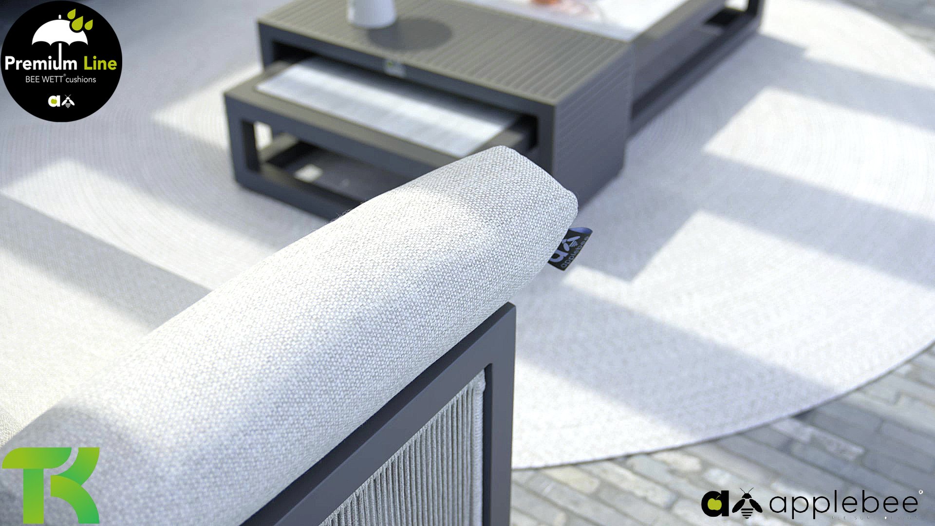AppleBee Bee Wett sind spezielle wetterfeste Kissen die natürlich draußen liegen bleiben können. Die abnehmbaren Hüllen werden aus den besten möglichen Stoffen hergestellt und sind alle waschbar auf 30°C. Der Stoff ist zusätzlich wasserabstoßend und garantiert UV-beständig. Eine offenes Gewebe an der Unterseite der Kissen sorgt für eine perfekte Drainage. Der Vorteil, dass die Bee Wett Kissen und Polster unglaublich viel schneller trocknen als vergleichbare andere Kissen. Das Stoff hat eine gute Beständigkeit gegen Verfaulen und Stockflecken und darüber hinaus UV-beständig, weich, komfortabel und feuchtigkeitsabstoßend ist. Die Polster sind ausziehbar und waschbar.