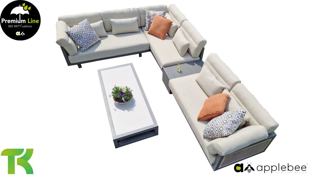 AppleBee Bee Wett sind spezielle wetterfeste Kissen die natürlich draußen liegen bleiben können. Die abnehmbaren Hüllen werden aus den besten möglichen Stoffen hergestellt und sind alle waschbar auf 30°C. Der Stoff ist zusätzlich wasserabstoßend  und garantiert UV-beständig. Eine offenes Gewebe an der Unterseite der Kissen sorgt für eine perfekte Drainage. Der Vorteil, dass die Bee Wett Kissen und Polster unglaublich viel schneller trocknen als vergleichbare andere Kissen. Das Stoff hat eine gute Beständigkeit gegen Verfaulen und Stockflecken und darüber hinaus UV-beständig, weich, komfortabel und feuchtigkeitsabstoßend ist. Die Polster sind ausziehbar und waschbar.