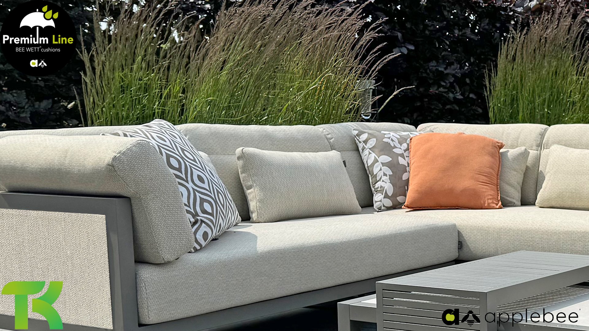 AppleBee Bee Wett sind spezielle wetterfeste Kissen die natürlich draußen liegen bleiben können. Die abnehmbaren Hüllen werden aus den besten möglichen Stoffen hergestellt und sind alle waschbar auf 30°C. Der Stoff ist zusätzlich wasserabstoßend  und garantiert UV-beständig. Eine offenes Gewebe an der Unterseite der Kissen sorgt für eine perfekte Drainage. Der Vorteil, dass die Bee Wett Kissen und Polster unglaublich viel schneller trocknen als vergleichbare andere Kissen. Das Stoff hat eine gute Beständigkeit gegen Verfaulen und Stockflecken und darüber hinaus UV-beständig, weich, komfortabel und feuchtigkeitsabstoßend ist. Die Polster sind ausziehbar und waschbar.