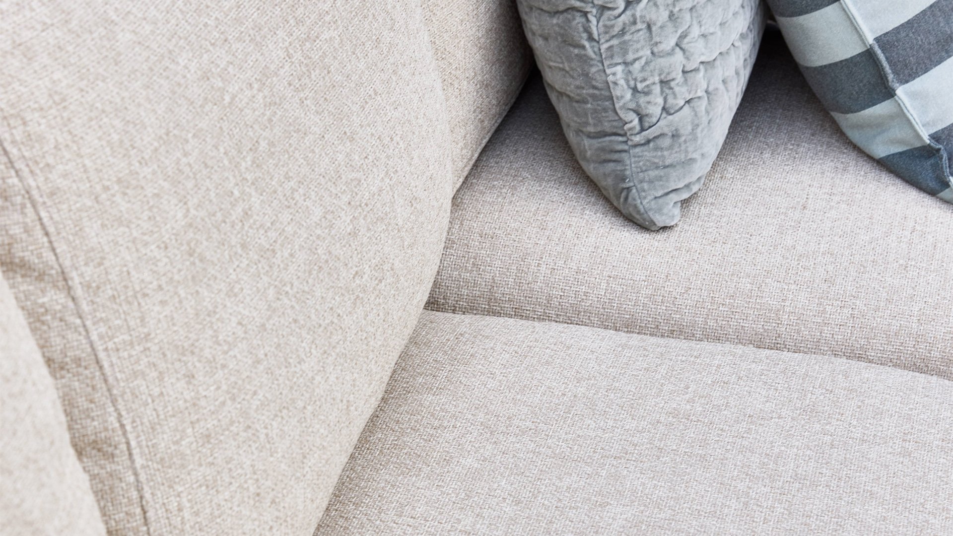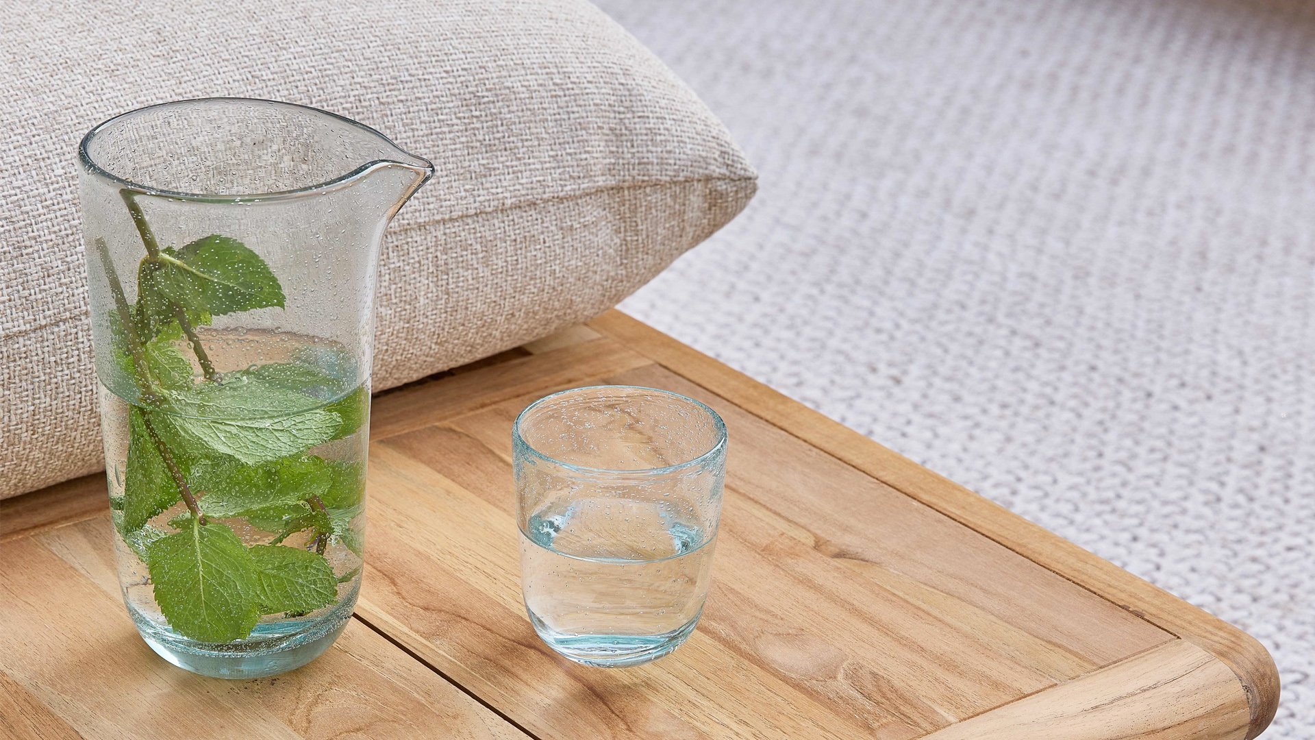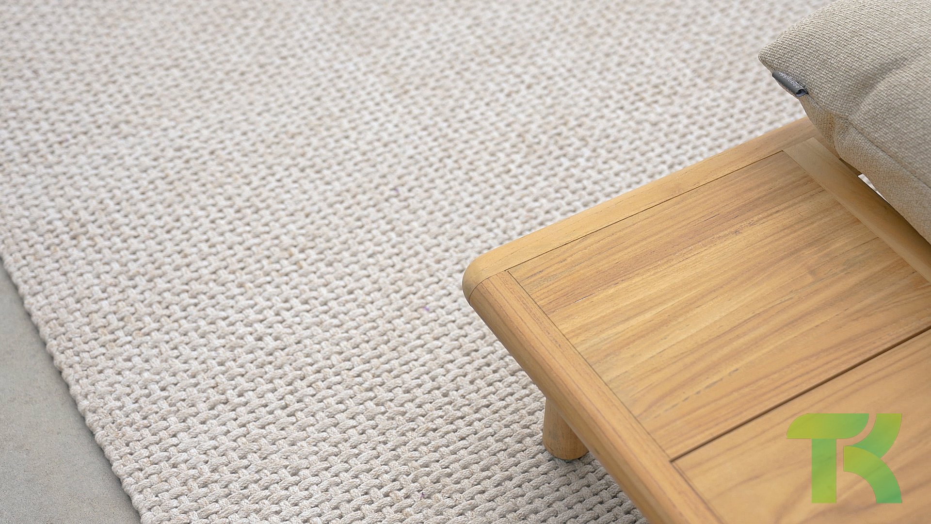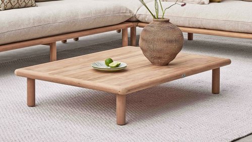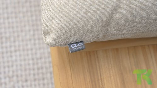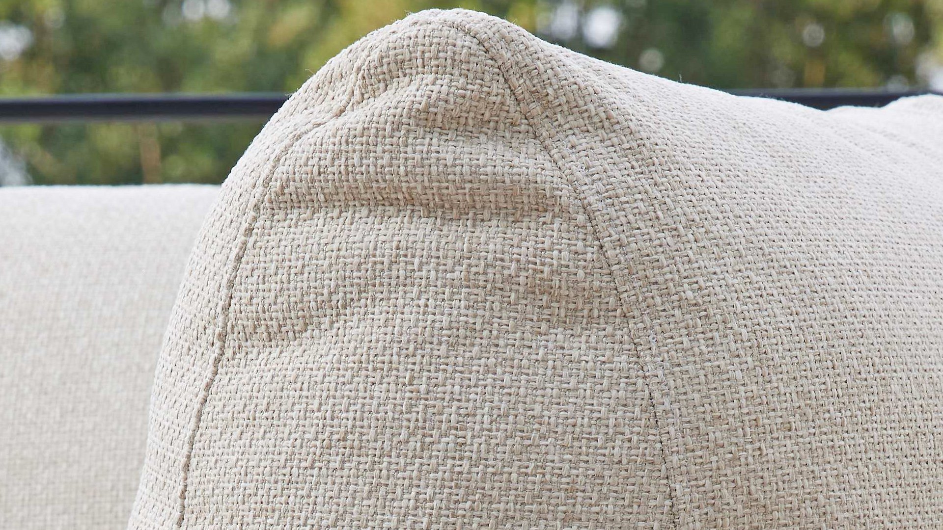 Benutzerfreundlichkeit ist das Schlüsselwort für das Design des Sling. Auf den integrierten Tischen können Sie Ihre Sachen bequem verstauen. Die Abmessungen der Module sind großzügig, sodass Sie es sich richtig gemütlich machen können. Das Design der Kissen und Kissenträger unterstreicht die entspannte Atmosphäre, die dieses Set ausstrahlt. Ein schönes Detail ist der Knopf, der durch den Teakholzrahmen gelegt wird, um das Rückenkissen zu halten.