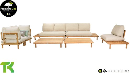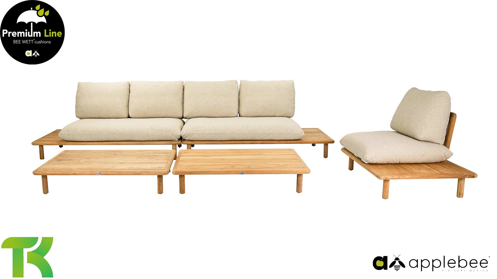 Da die Möbel aus hochwertigem Teakholz gefertigt sind, ist das Set auch dann noch ein Augenschmaus, wenn es ohne Kissen im Garten stehen bleibt. Das Sling Lounge-Set von Apple Bee ist ein geräumiges Lounge-Set aus Teakholz mit hohem Sitzkomfort durch die extra dicken Kissen. Ein ideales Lounge-Set, um wundervolle Sommerabende zu genießen.