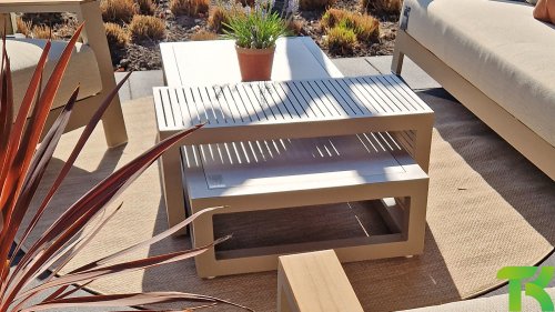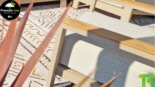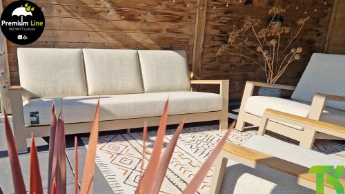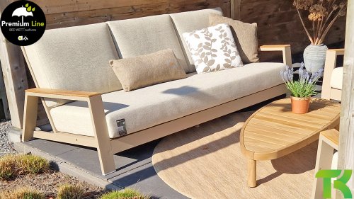 Die Spring-Aluminiumkollektion ist minimalistisch und klar, fällt aber dennoch durch ihr besonderes Design ins Auge. Eine schlanke diagonale Linie, fachmännisch verarbeitetes Aluminium, pulverbeschichtet in einem wunderschönen Latte-Farbton und weiche, bequeme Kissen mit sandfarbener Polsterung. Ein Hauch von Teakholz an der Rückenlehne rundet das Set ab und verleiht ihm das gewisse Extra. Mit einer Dekoration in Ihrem eigenen Stil können Sie diesem „Nest in der Sonne“ im Handumdrehen eine ganz persönliche Note verleihen. Kombinieren Sie das Set mit dem Santorini- oder Emma-Couchtisch oder wählen Sie einen der anderen Apple Bee-Tische. Lass den Frühling kommen!