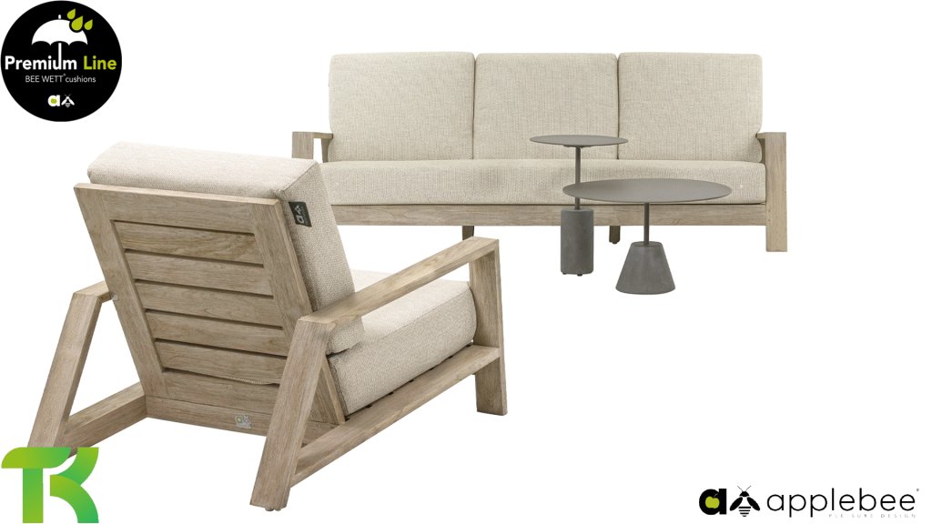 Die Apple Bee Spring Teak-Kollektion besticht durch ihr minimalistisches und klares Design, das dank seiner einzigartigen Formgebung dennoch beeindruckt. Elegante diagonale Linien, handgefertigtes Teakholz in Küstenoptik und weiche, bequeme Kissen mit sandfarbenem Bezug zeichnen dieses Set aus. Gefertigt aus hochwertigem Teakholz, ist es auch ohne Kissen ein wahrer Augenschmaus in Ihrem Garten. Ein harmonisches Gesamtbild! Mit ein paar schönen Dekokissen nach Ihrem Geschmack schaffen Sie im Handumdrehen Ihre ganz persönliche Wohlfühloase in der Sonne.