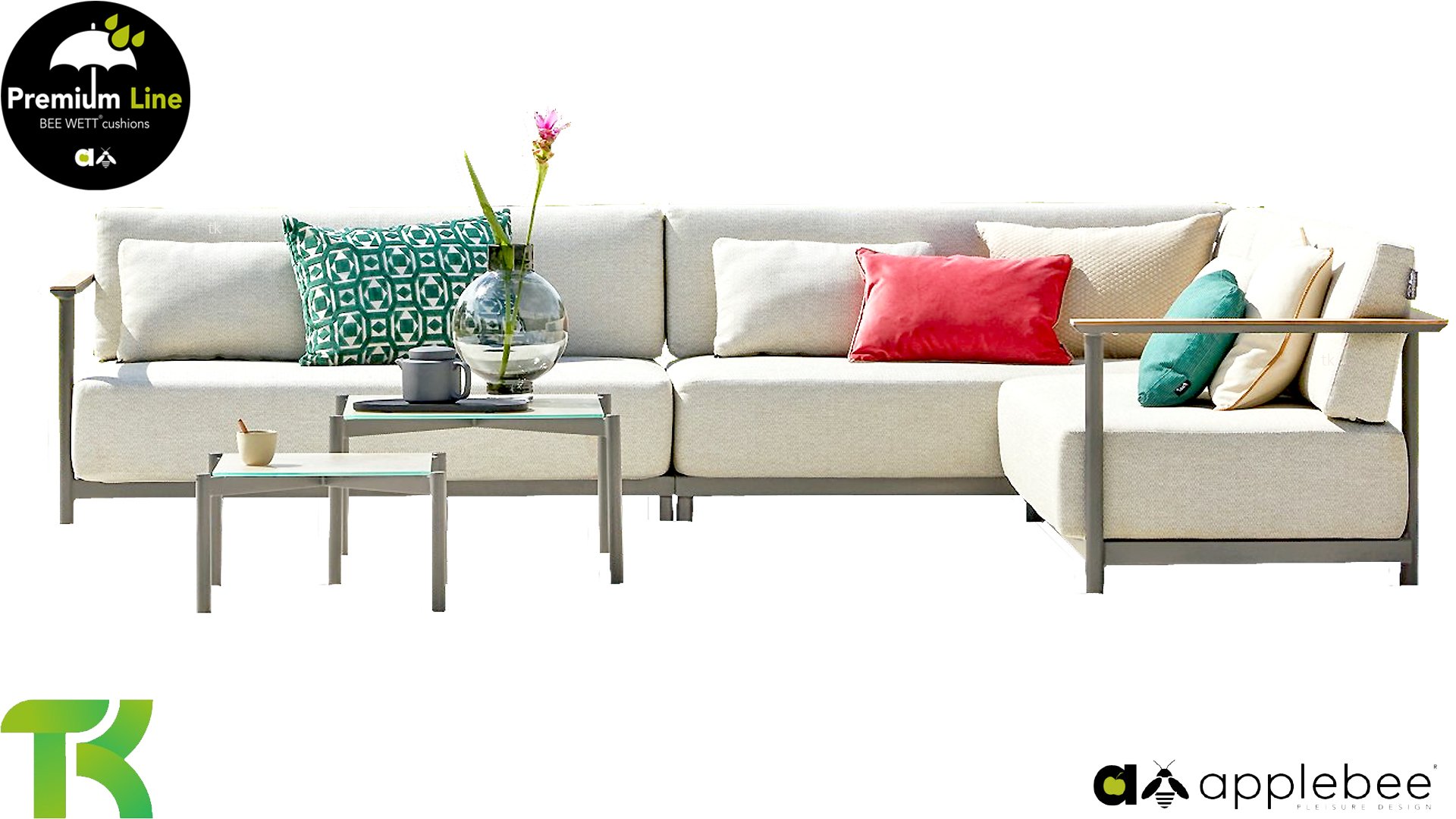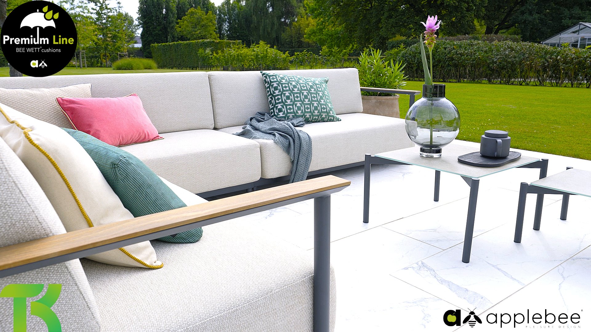 AppleBee Bee Wett sind spezielle wetterfeste Kissen die natürlich draußen liegen bleiben können. Die abnehmbaren Hüllen werden aus den besten möglichen Stoffen hergestellt und sind alle waschbar auf 30°C. Der Stoff ist zusätzlich wasserabstoßend und garantiert UV-beständig. Eine offenes Gewebe an der Unterseite der Kissen sorgt für eine perfekte Drainage. Der Vorteil, dass die Bee Wett Kissen und Polster unglaublich viel schneller trocknen als vergleichbare andere Kissen. Das Stoff hat eine gute Beständigkeit gegen Verfaulen und Stockflecken und darüber hinaus UV-beständig, weich, komfortabel und feuchtigkeitsabstoßend ist. Die Polster sind ausziehbar und waschbar.