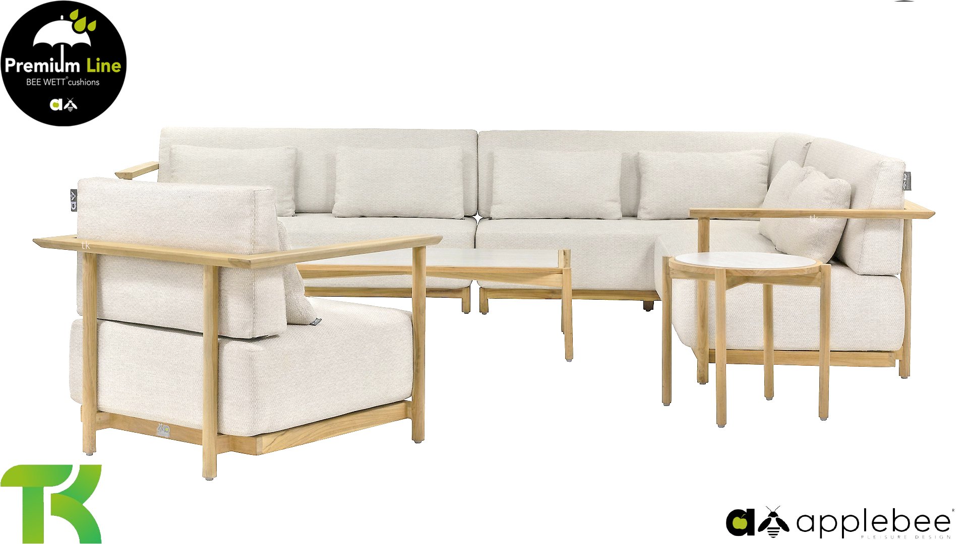 Apple Bee St. Lucia Teak Lounge: Wie luxuriös möchten Sie die Kissen Ihrer Loungeset haben? Die St. Lucia Teak Lounge hat Sitzkissen von beeindruckenden 25 cm Dicke, natürlich in der Apple Bee Bee Wett Qualität. Trotzdem, dass Sie es vielleicht nicht erwarten, trocknen diese Kissen auch wesentlich schneller als Kissen mit Standardschaum. Durch die extrem dicken Kissen erhält die St. Lucia sofort ein sehr luxuriöses Aussehen, bleibt aber durch die klare Form und Stabilität zeitgemäß. Dies liegt natürlich auch am Rahmen aus hochwertigem SVLK-Teakholz in natürlicher Farbe. Die runden Beine gehen elegant in eine geschmackvoll geformte Lehne über, die von der Armlehne über den Rücken verläuft und Sie sozusagen umarmt. St. Lucia ist robust und gleichzeitig raffiniert in den richtigen Proportionen!