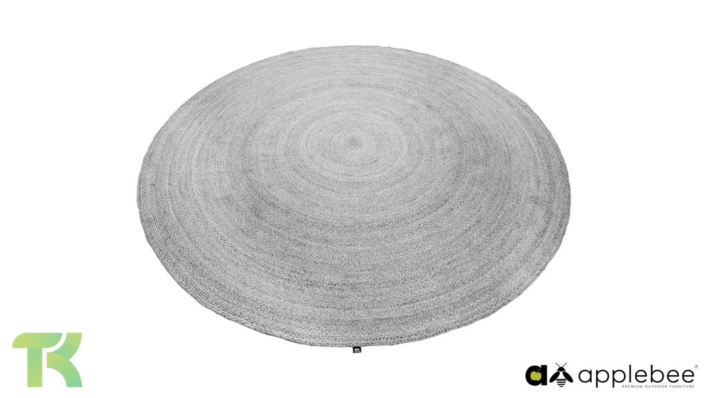Die runde Form mit ihrem markanten Schlangenmuster verleiht diesem Teppich eine verspielte und dynamische Optik. Er besteht zu 100% aus recyceltem PET, hat eine rutschfeste, synthetische Unterseite für den Außenbereich und ist wasserdurchlässig. Dank der Webtechnik ist er robuster als handgewebte Teppiche.