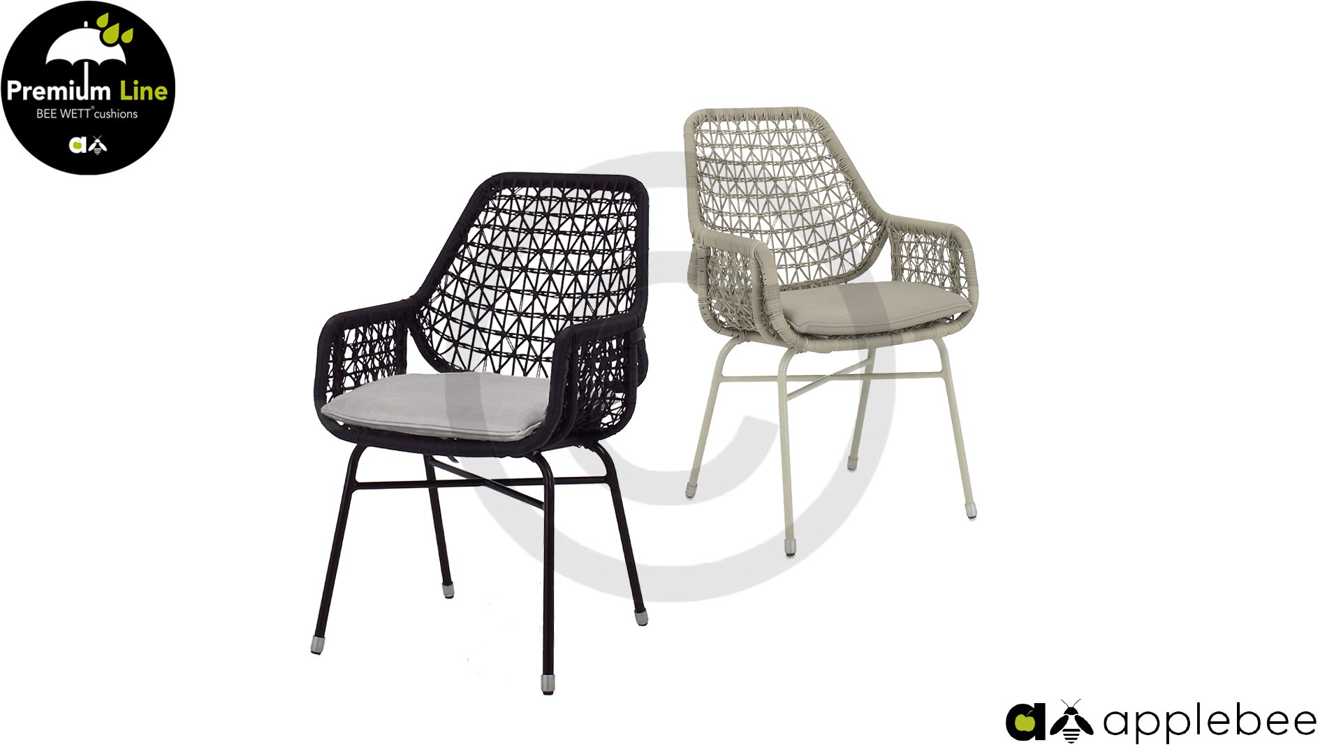Apple Bee Zara Esszimmerstühle: Kunstvoll geknüpfte Pflanzenampeln und Wandbehänge sind wieder voll im Trend. Die gewebten Fäden der Apple Bee Zara Esszimmerstühle sind ebenso kunstvoll geknüpft und verspielt und erzeugen so einen transparenten Effekt. Man könnte sie fast Makramee-Kunst nennen!