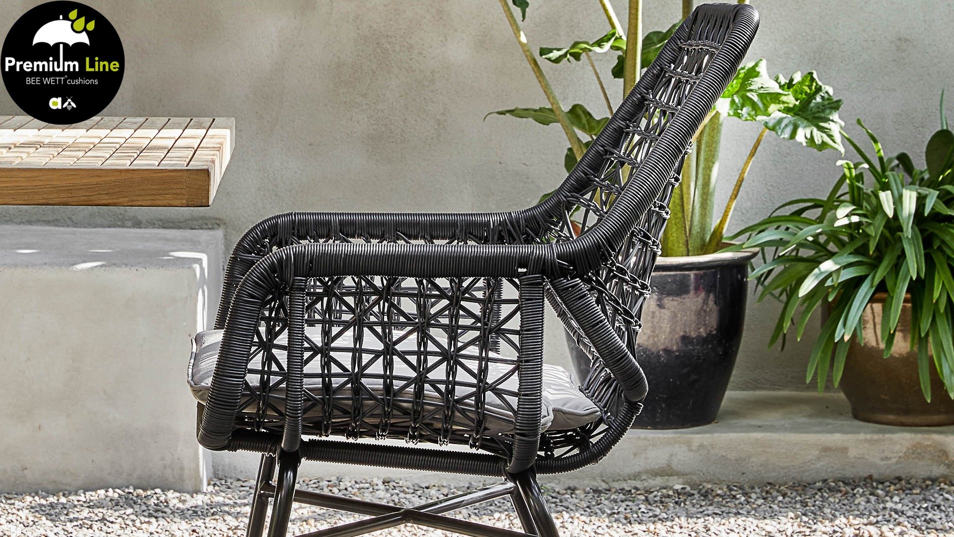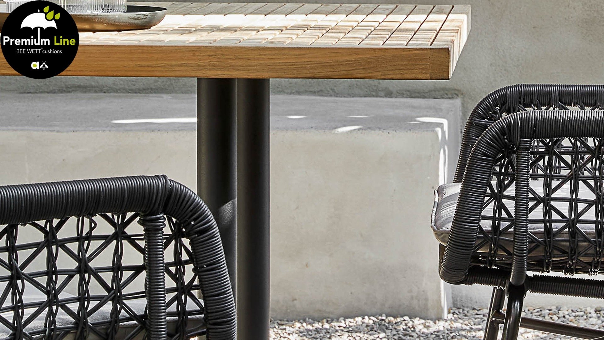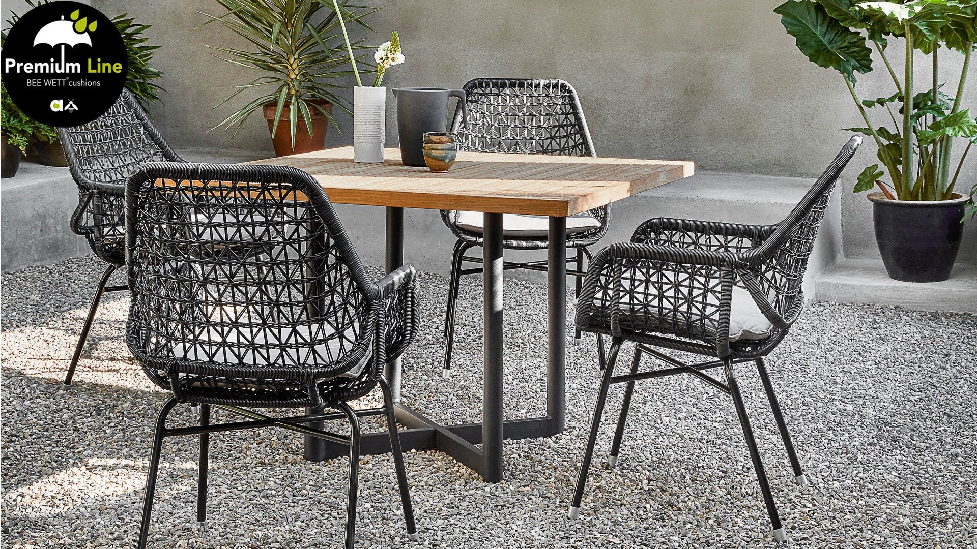 Die gewebten Fäden der Zara Esszimmerstühle sind ebenso kunstvoll geknüpft und verspielt und erzeugen so einen transparenten Effekt. Man könnte sie fast Makramee-Kunst nennen! Der Stuhl besteht aus einem Aluminiumrahmen und ist daher rostfrei. Zara ist zudem stapelbar und somit leicht zu verstauen. Die Stühle verfügen außerdem über ein abnehmbares Sitzkissen mit BEE WETT®-Technologie.