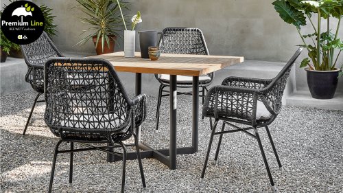 Sie können diese wunderschönen Esszimmerstühle vielseitig kombinieren, zum Beispiel mit den Tischen Joie de Vivre oder Jakarta. So gestalten Sie Ihre ganz persönliche Gartenmöbelgarnitur!