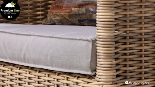 Natürlich mit den bekannten Bee Wett-Kissen von AppleBee für eine bequeme Nutzung! Apple Bee-Möbel bestehen aus den besten Materialien. Dies gilt insbesondere für die Kissen. Bee Wett sind spezielle wetterfeste Kissen, die Sie draußen liegen lassen können. Der abnehmbare Bezug besteht aus den besten Stoffen, die alle waschbar sind. Neben wasserabweisend ist der Stoff auch garantiert UV-beständig. Im Gegensatz zu gewöhnlichem Schaum nimmt die einzigartige Bee Wett-Füllung keine Feuchtigkeit auf. Das offene Gewebe auf der Unterseite des Kissens sorgt für eine perfekte Drainage. Dies führt dazu, dass Ihr Bee Wett-Kissen spektakulär viel schneller trocknet als andere Kissen. Darüber hinaus ist der Olefin-Stoff beständig gegen Verrottung und Schimmel, UV-beständig, feuchtigkeitsabweisend, weich und komfortabel.