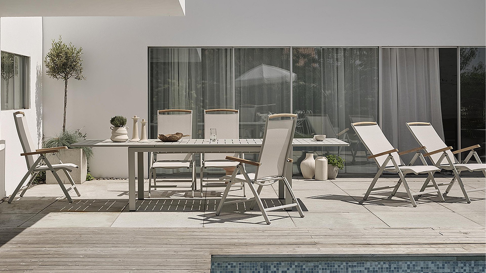 Aluminium ist sehr wartungsfreundlich und leicht. Diese praktischen Möbel sind leicht zu reinigen. Unser Aluminium mit einer festen Pulverbeschichtung ist witterungsbeständig und UV-beständig. Aluminium ist nicht rostanfällig, zeitlos und stilvoll.