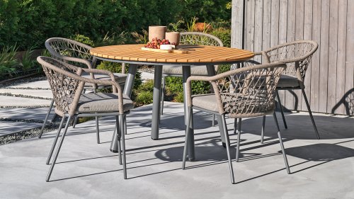 Der Brafab Bam Bo Tisch eignet sich sowohl zum Essen als auch zum Entspannen. Organische runde Formen aus Bambus. Robuste Elemente, die trotz der abgerundeten Details Eleganz ausstrahlen. Brafab weiß, dass das schwedische Klima, ebenso wie das niederländische, alle Arten von Wetter mit Regen und Sonne bieten kann, deshalb steht Nachhaltigkeit immer im Mittelpunkt, wenn ein neues Gartenmöbel in Produktion geht.