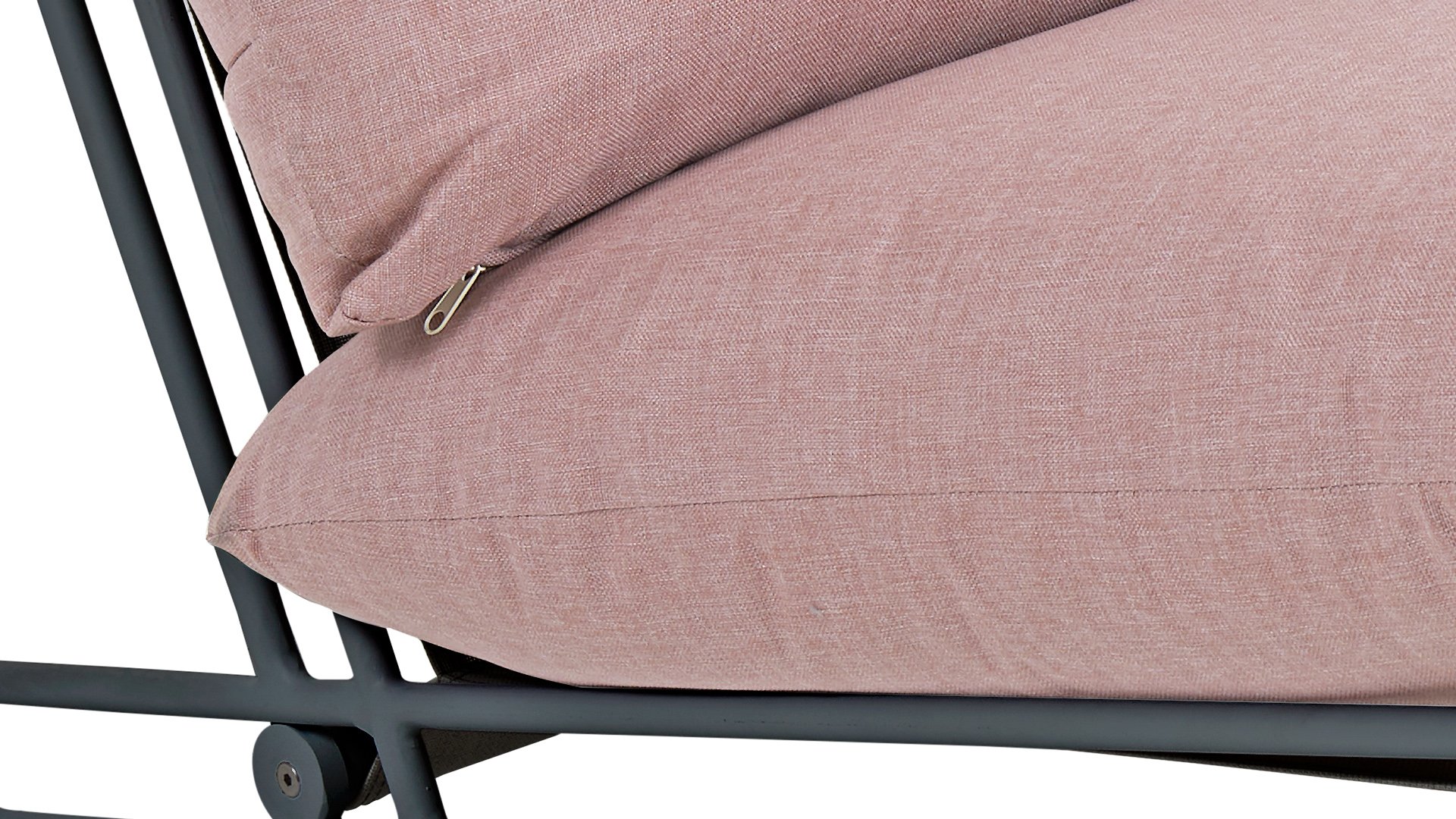 Ein bequemer Sessel, der einen Statement setzt. Die abfallende Sitzfläche und das offene Aluminiumgestell schaffen einen wunderbaren Ort zum Entspannen. Die Kissen sind in Rosa, Grau und Beige erhältlich. Die BRAFAB BLIXT modulare Außensitzbank gehört zum Sortiment von BRAFAB Outdoor-Möbeln und ist eine moderne Bau-Sitzbank mit einem Aluminiumgestell und einer Sitzfläche aus Textilene. Die bequemen Kissen bestehen aus wasserabweisendem Olefin-Gewebe. Jeder Stuhl kann als einzelner Sessel verwendet oder miteinander verbunden werden, um eine draußen Couch zu bilden, so lang wie Sie wollen!