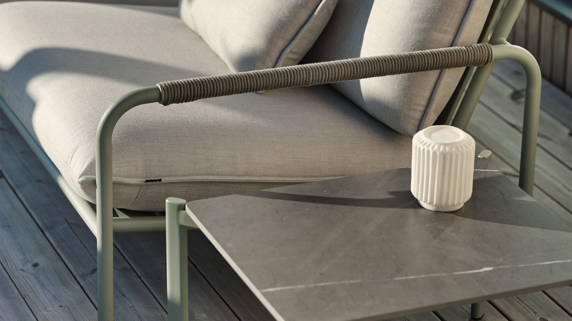 Wenn Sie Gartenmöbel von Brafab kaufen, werden Sie feststellen, dass über Form, Funktion und Qualität gut nachgedacht wurde. Der Rahmen besteht aus pulverbeschichtetem Edelstahl und die Kissen aus Acrylstoff. Das Lerberget Loungeset von Berafab bietet Ihnen und Ihrem Garten etwas Besonderes und begleitet Sie den ganzen Sommer über, auch im nächsten und übernächsten Sommer usw. Dieser Tisch ist auch in der Farbe Dusty Green erhältlich.