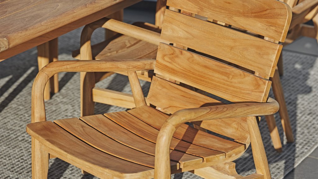 Der Lilja Dining von Brafab ist ein echter Sessel zum Zurücklehnen und Entspannen. Schön abgerundete Ecken für optimalen Sitzkomfort. Die schöne Armlehne in Teak fällt ins Auge. Der Sitzbereich besteht aus stilvollen breiten Teakholzlatten. Organische runde Formen in warmem Teakholz. Robuste Elemente, die durch die abgerundeten Details dennoch Eleganz ausstrahlen. Der Lilja Dining Chair von Brafab ist ein echter Sessel zum Zurücklehnen und Entspannen. Schön abgerundete Ecken für optimalen Sitzkomfort. Die schöne Armlehne in Teak fällt ins Auge.