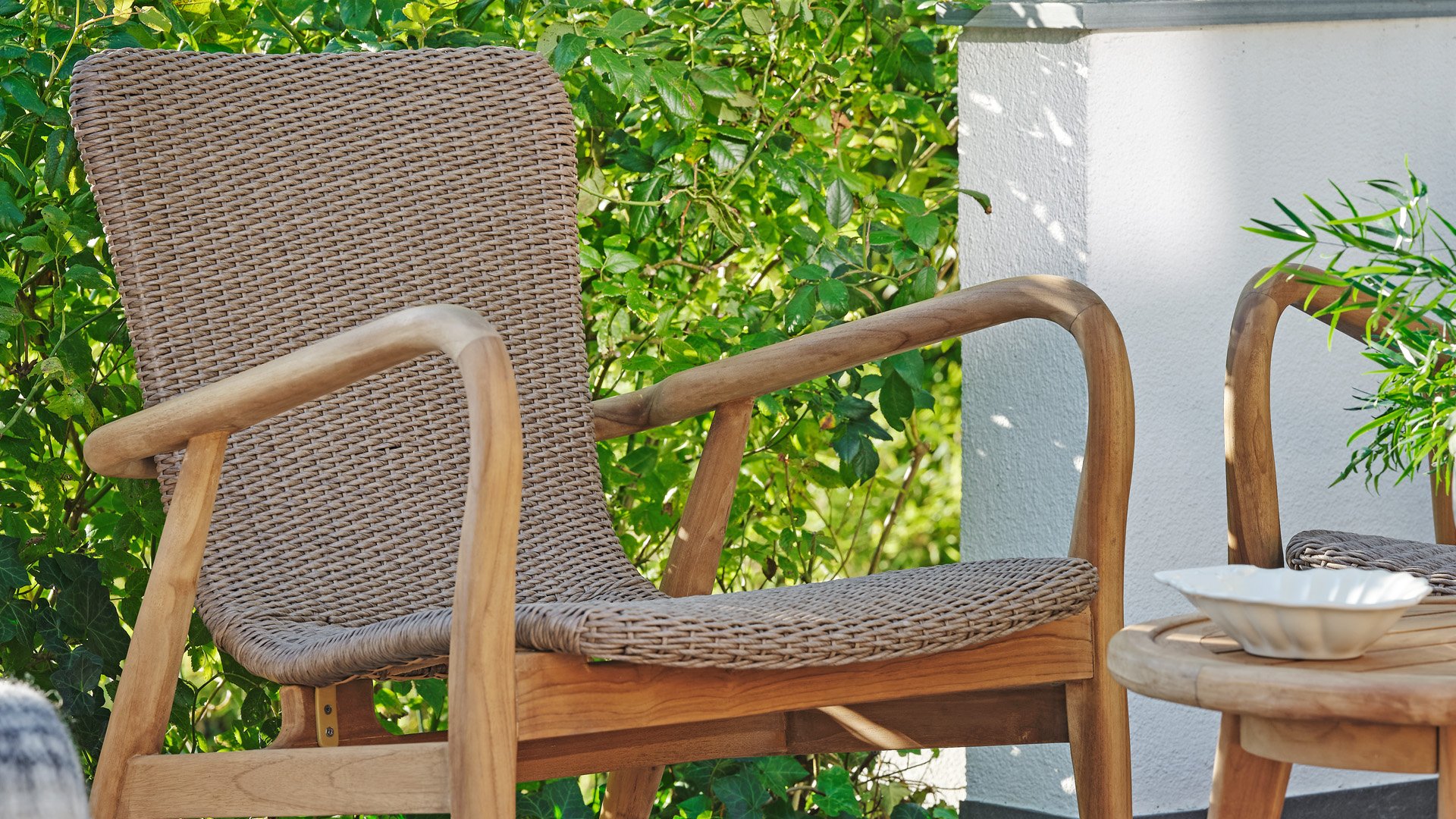 Materialien Lounge-Sessel Teak, Geflecht