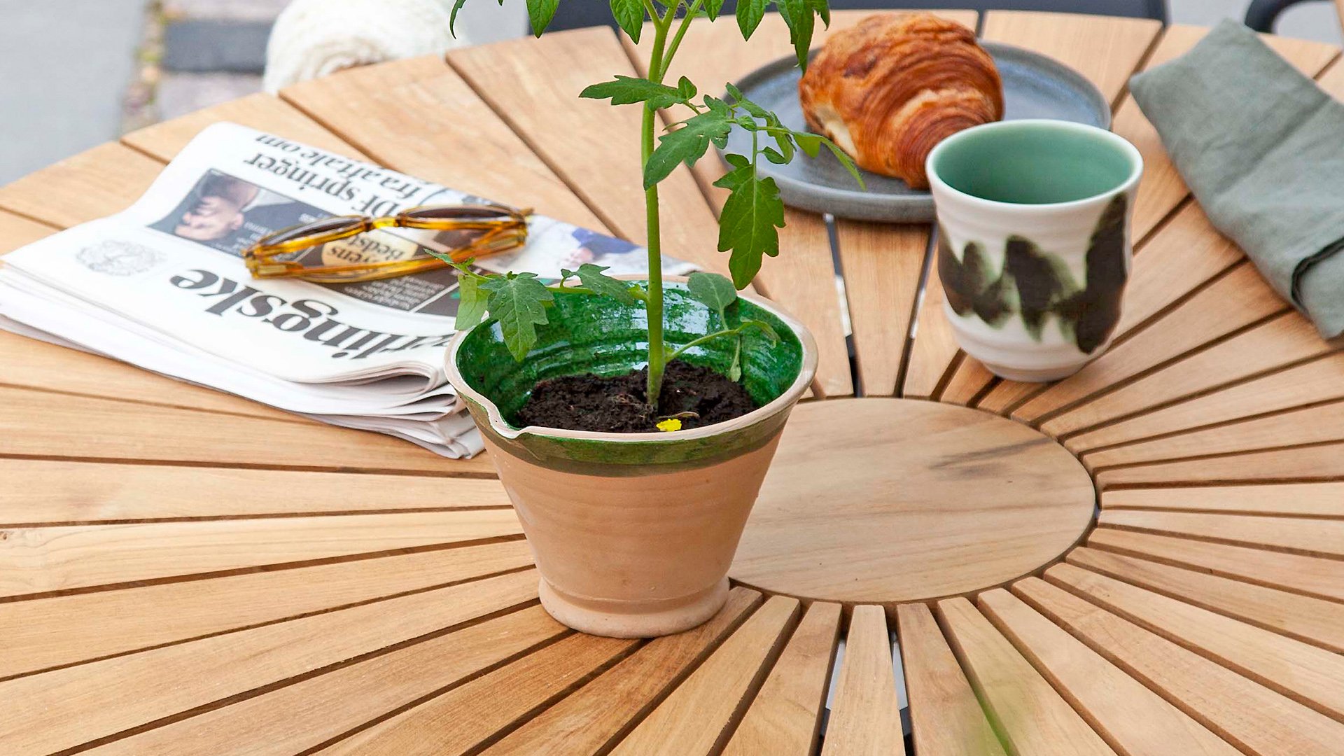 Dieser moderne Klassiker weckt Erinnerungen an die Sommerferien, wo sicherlich der Kaffee und die täglichen Mahlzeiten in entspannter Umgebung genossen wurden. Die Kissensind separat erhältlich.