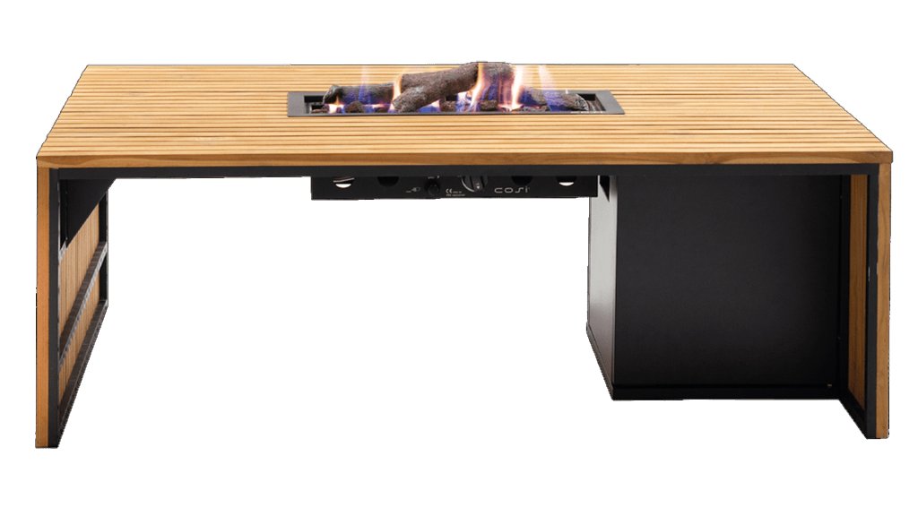 Die Cosibridge ist ein echter Hingucker, der perfekt zu den neuesten Outdoor-Trends passt. Die Kombination von Teakholz mit Aluminium macht den Cosibridge Feuertisch wartungsfreundlich und zu einer nachhaltigen Wahl.