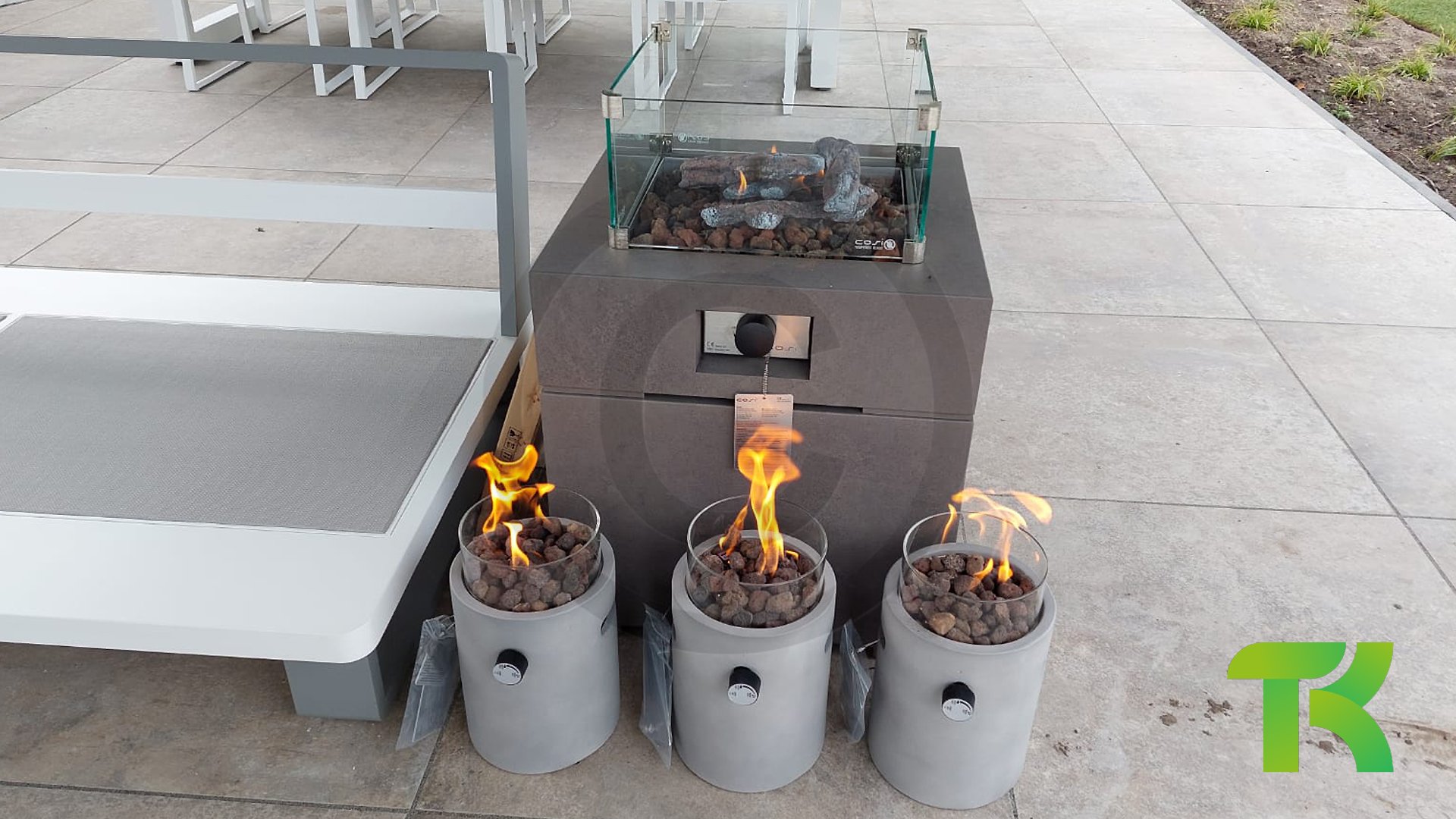 Für den letzten Schliff kann der Cosi mit verschiedenen Zubehörteilen kombiniert werden. Der Cosi Feuertisch wird gebrauchsfertig geliefert. Dies bedeutet, dass ein Druckregler mit Gasschlauch, Batterie für Zündung, Keramikstämmen und Lavasteinen bereits enthalten ist. Alles was benötigt wird ist eine Gasflasche. In den Cosi passen Gasflaschen mit einer maximalen Höhe von 40 cm. Dies können zum Beispiel die 5-kg-Gasflaschen von Benegas sein. Möchten Sie dem Cosi einen besonders luxuriösen Look verleihen? Dann wählen Sie das Cosi Glasset. Dies ist perfekt auf Ihren Cosi zugeschnitten. Sie können die Cosi-Tischplatte auf das Glasset legen, um beispielsweise noch mehr Platz für Snacks und Gläser zu schaffen. Bitte beachten Sie: Diese Tischplatte kann nur verwendet werden, wenn das Feuer nicht benutzt wird. Ein Cosi-Feuertisch kann nach Wunsch mit einem Glasset und / oder einer Allwetterschutzhülle erweitert werden.