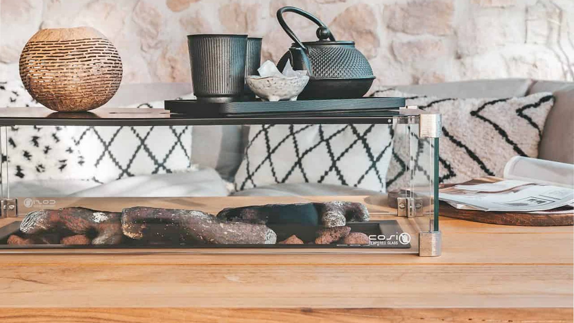 Für den letzten Schliff kann der Cosi mit verschiedenen Zubehörteilen kombiniert werden. Der Cosi Feuertisch wird gebrauchsfertig geliefert. Dies bedeutet, dass ein Druckregler mit Gasschlauch, Batterie für Zündung, Keramikstämmen und Lavasteinen bereits enthalten ist. Alles was benötigt wird ist eine Gasflasche. In den Cosi passen Gasflaschen mit einer maximalen Höhe von 40 cm. Dies können zum Beispiel die 5-kg-Gasflaschen von Benegas sein. Möchten Sie dem Cosi einen besonders luxuriösen Look verleihen? Dann wählen Sie das Cosi Glasset. Dies ist perfekt auf Ihren Cosi zugeschnitten. Sie können die Cosi-Tischplatte auf das Glasset legen, um beispielsweise noch mehr Platz für Snacks und Gläser zu schaffen. Bitte beachten Sie: Diese Tischplatte kann nur verwendet werden, wenn das Feuer nicht benutzt wird. Ein Cosi-Feuertisch kann nach Wunsch mit einem Glasset und / oder einer Allwetterschutzhülle erweitert werden.