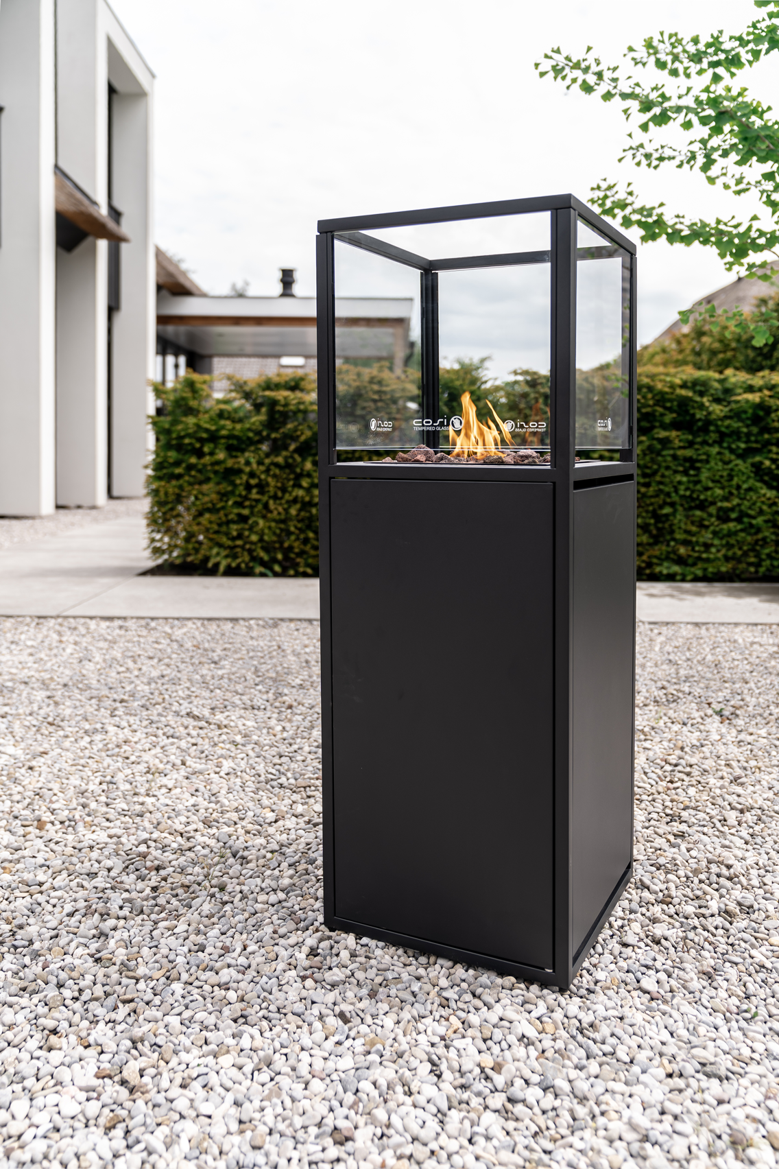 Neu in der Cosiscoop-Kollektion, der Cosiscoop Pillar. Diese fantastischen säulenförmigen Gashaarden stehlen die Show im Garten, auf der Terrasse und unter der Veranda. Die Pillar ist in zwei Varianten erhältlich: stilvolles Schwarz und robustes Teakholz. Die Cosiscoop Pillars sind eigenständige Objekte, die an jedem Ort die Show stehlen. Diese großen Laternen funktionieren im Gegensatz zu anderen Cosiscoops mit einer Gasflasche, sowohl 5 kg als auch 10 kg, anstelle einer Gaskartusche. Dies sorgt dafür, dass die Pillar viel länger brennt als die kleineren Scoops. Wenn Sie eine 5-kg-Gasflasche in die Pillar stellen, können Sie etwa 70 Stunden lang diese säulenförmigen Scoops genießen.