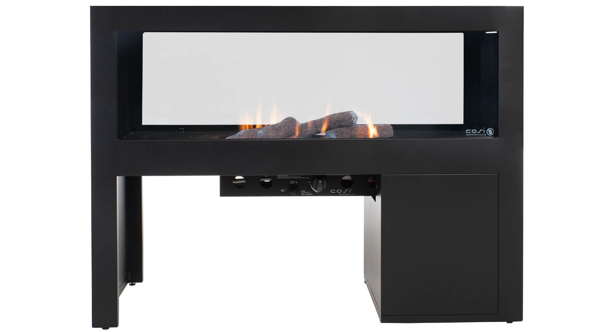Eine neue überraschende Ergänzung zur Cosi-Kollektion ist die Cosivista-Serie. Die Cosivista ist ein einzigartiger freistehender Gaskamin, durch den man hindurchblicken kann. Dieser Kamin ist mit zwei großen Glaswänden ausgestattet. Mit diesem breiten Kamin von 120 cm oder 160 cm können Sie den Raum in Ihrem Garten oder unter dem Vordach in verschiedene Bereiche unterteilen. Stellen Sie ihn zum Beispiel zwischen Ihre Lounge-Set und Außenküche, um den Garten aus verschiedenen Blickwinkeln gemütlich und atmosphärisch zu gestalten. Möchten Sie die Cosivista vor eine Wand stellen? Auch das ist möglich dank der praktischen zusätzlichen Rückwand, die mitgeliefert wird. Dieses schwarze Aluminiumpanel hängen Sie einfach von oben in die Cosivista. Mit einer kleinen Handlung verleihen Sie diesem wunderschönen Gaskamin ein völlig neues Aussehen. Im Cosivista 120 platzieren Sie eine Gasflasche mit einer maximalen Höhe von 40 cm. Der große Bruder Cosivista 160 bietet sogar Platz für Gasflaschen bis zu 60 cm Höhe. So können Sie die angenehme Wärme dieses Ofens noch länger genießen.