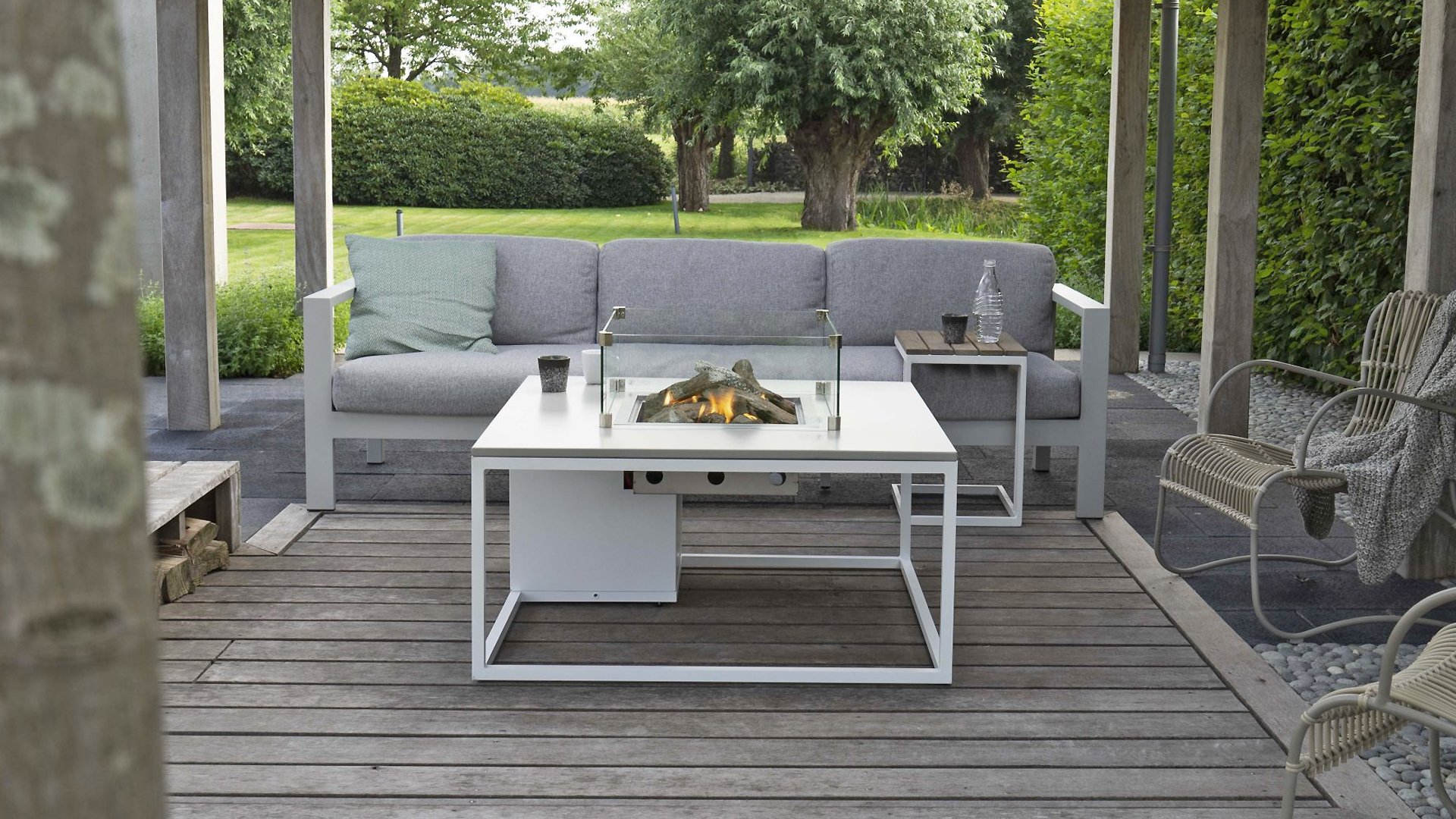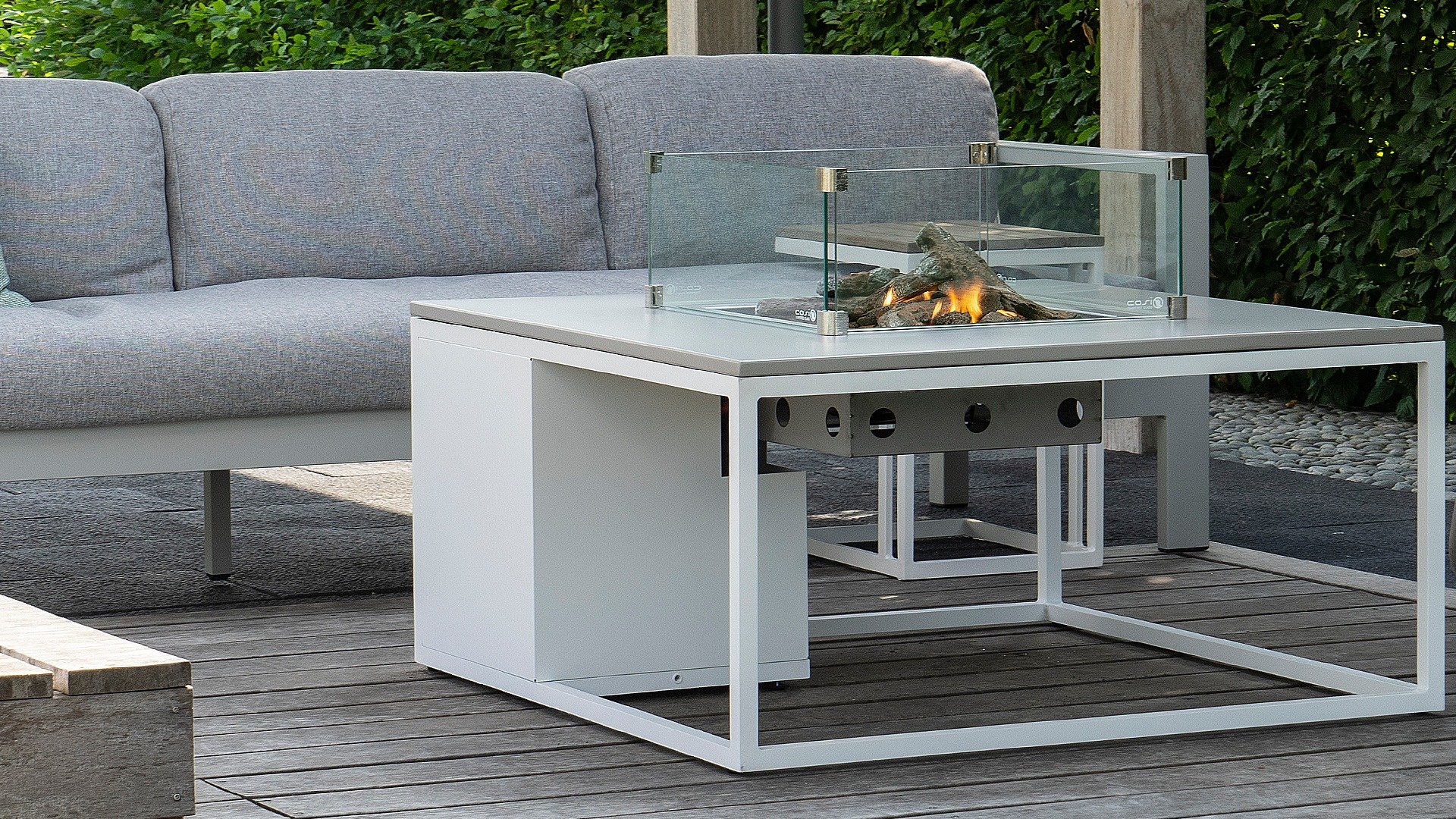 Der Cosiloft 100 Lounge-Tisch ist ein wunderschöner Lounge-Tisch, den Sie nach Ihrem Geschmack zusammenstellen können. Diese neue Kollektion von Cosi ist eine Weiterentwicklung der Feuertische. Das Cosiloft hat einen schönen, durchbrochenen Aluminiumrahmen mit einer Tischplatte Ihrer Wahl. Es stehen drei verschiedene Tischplatten zur Verfügung: Grau, Schwarz und Teak. Der Rahmen ist in zwei Farben erhältlich: Weiß für einen modernen Look oder Schwarz für einen industriellen Stil. Trotz seiner schönen Lounge-Tischhöhe passt der Cosiloft 100 sogar in eine 5-kg-Gasflasche. Dies passt gut zum reinen Design des Cosiloft-Tisches. Eine Abdeckplatte für den Brenner liegt jedem Cosiloft bei. Wenn Sie kein Feuer haben, können Sie trotzdem die gesamte Tischoberfläche auf diese Weise nutzen. Viel Spaß mit Familie und Freunden!