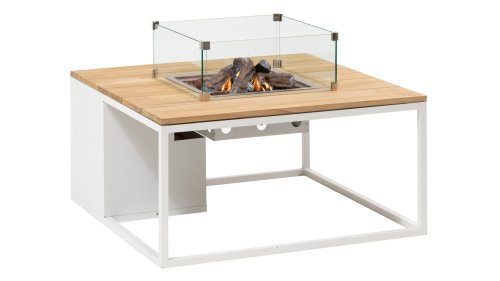 Der Cosiloft 120 Lounge-Tisch kann problemlos mit einer Vielzahl von Lounge-Sets kombiniert werden. Der Cosiloft 120 Lounge-Tisch verfügt über einen geraden Brenner, der genügend Platz bietet, um alle Ihre Freunde und Familie zu einem Drink einzuladen. Der Cosiloft ist 80 cm breit und 120 cm lang. Genau wie der Cosiloft 100 verfügt dieser Feuertisch über einen schönen, durchbrochenen Aluminiumrahmen, der mit einer der drei Tischplatten kombiniert werden kann: Teak, Schwarz und Grau. Der Rahmen ist in zwei Farben erhältlich: Weiß für einen modernen Look oder Schwarz für einen industriellen Stil. Trotz seiner schönen Lounge-Tischhöhe passt der Cosiloft 120 sogar in eine 5-kg-Gasflasche. Dies passt gut zum reinen Design des Cosiloft-Tisches. Eine Abdeckplatte für den Brenner liegt jedem Cosiloft bei. Wenn Sie das Feuer nicht eingeschaltet haben, können Sie die gesamte Tischfläche auf diese Weise verwenden.