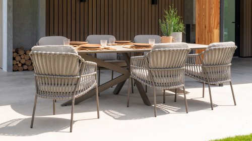 Auf der Suche nach einem schönen Gartenset? Genießen Sie nach einem anstrengenden Arbeitstag ein leckeres Essen im Freien oder genießen Sie einen langen Abend mit Familie oder Freunden. Mit einem Dining-Set ist alles möglich. Die Materialien unserer Gartensets sind so konzipiert, dass sie den Elementen standhalten. Entscheiden Sie sich für warmes Teakholz, schlichtes Aluminium, anmutiges Rope von 4 Seasons Outdoor, zeitloses Geflecht oder eine Materialkombination wie Applebee? Neu und Planet Proof sind die Modelle aus recyceltem Kunststoff der dänischen Marke HOUE! Kombinieren Sie nach Herzenslust mit dem Tisch Ihrer Wahl. Wenn Sie eine andere Kombination als abgebildet wünschen, können Sie die Schaltfläche Eigene erstellen verwenden. Zögern Sie nicht, uns bezüglich der Möglichkeiten zu kontaktieren! !. Wir werden unser Bestes tun, um Sie bestmöglich zu beraten.