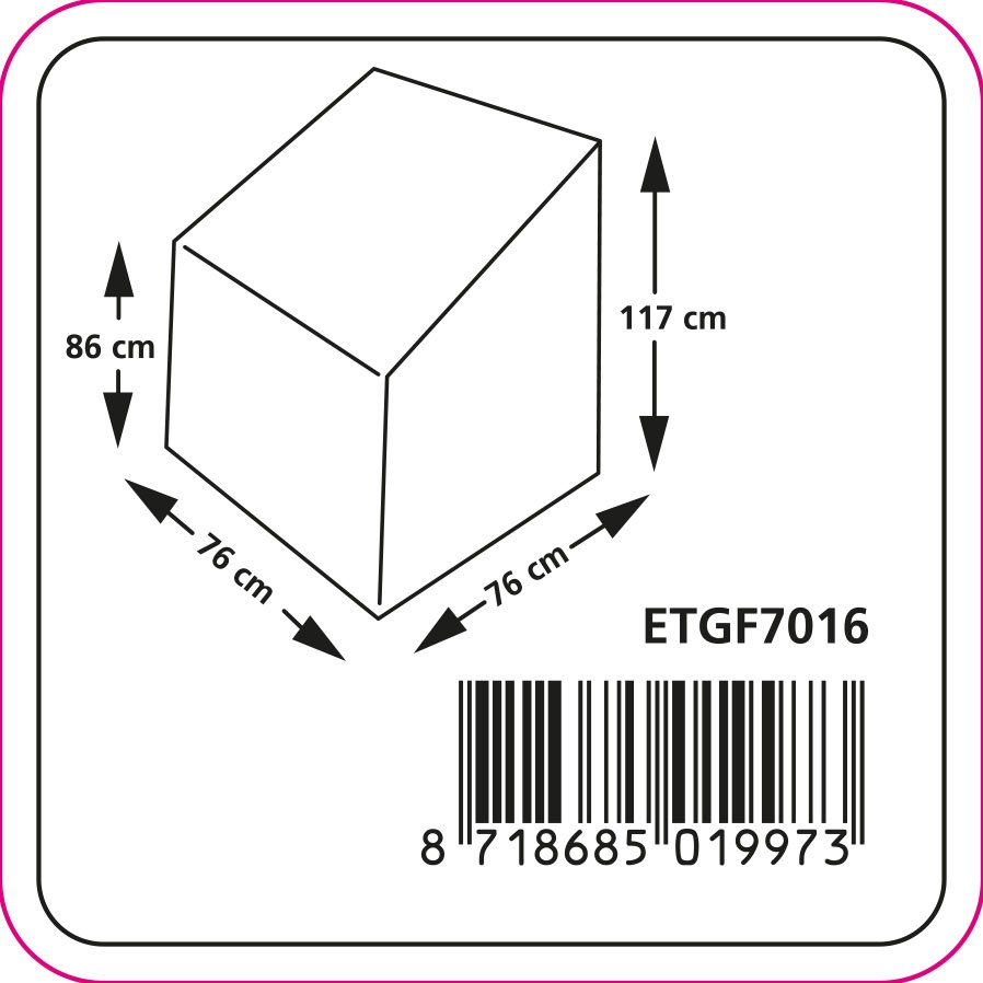 Die Eurotrail-Hüllen bestehen aus hochwertigem wasserdichtem Cantonic-Polyestermaterial mit atmungsaktiver Beschichtung, getapeten Nähten und einer speziellen Anti-UV-Behandlung für optimalen UV-Schutz. Die Hülle ist in verschiedenen Größen erhältlich und ideal zum Schutz Ihrer Stühle vor Schmutz und Regen.