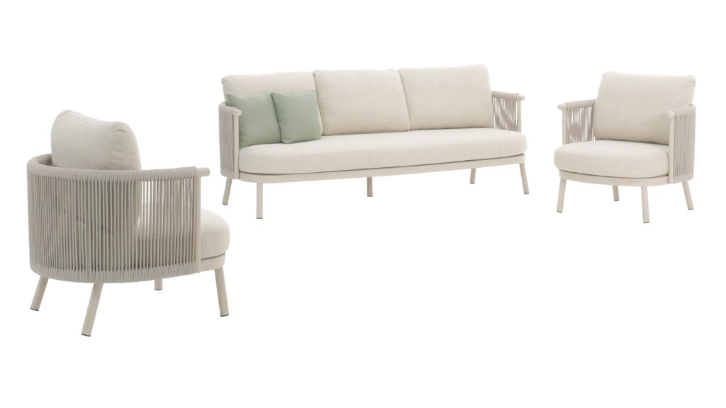 | Materialien Loungegruppe | Rope, Pulverbeschichtet Aluminium/Stahl |
