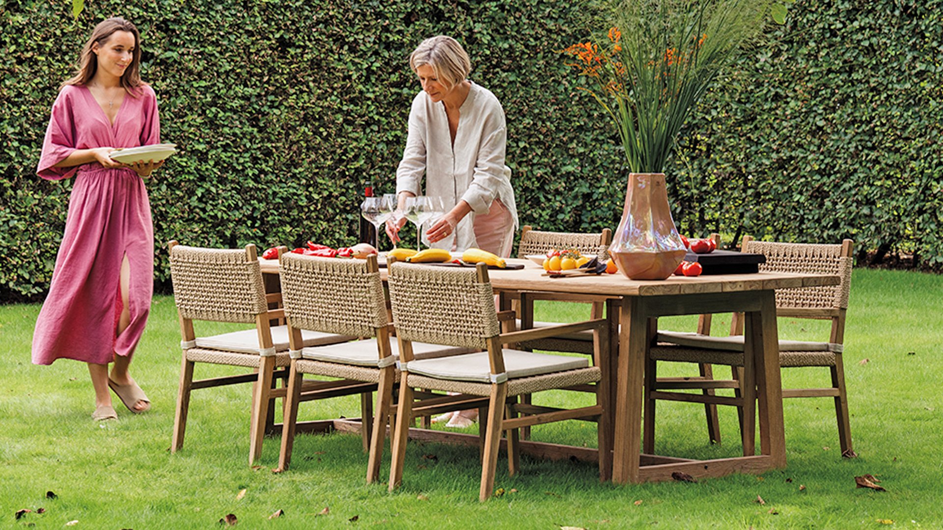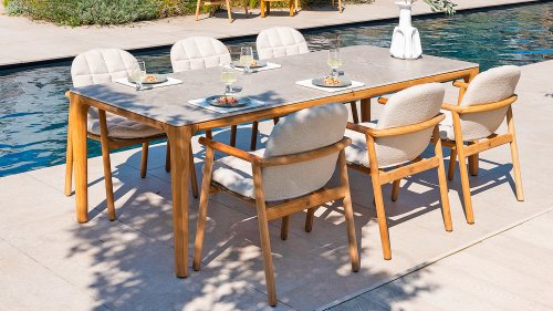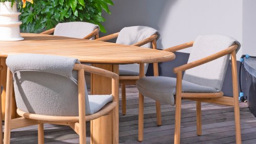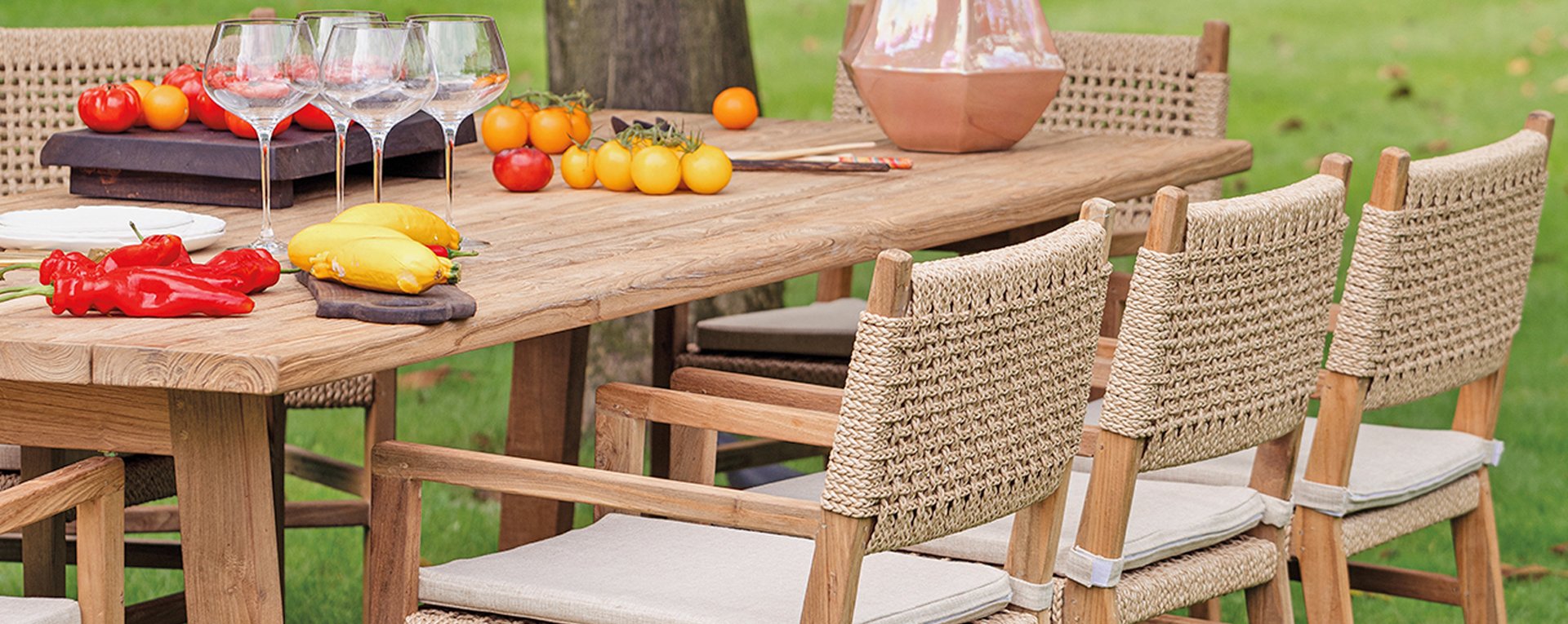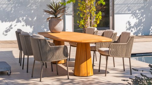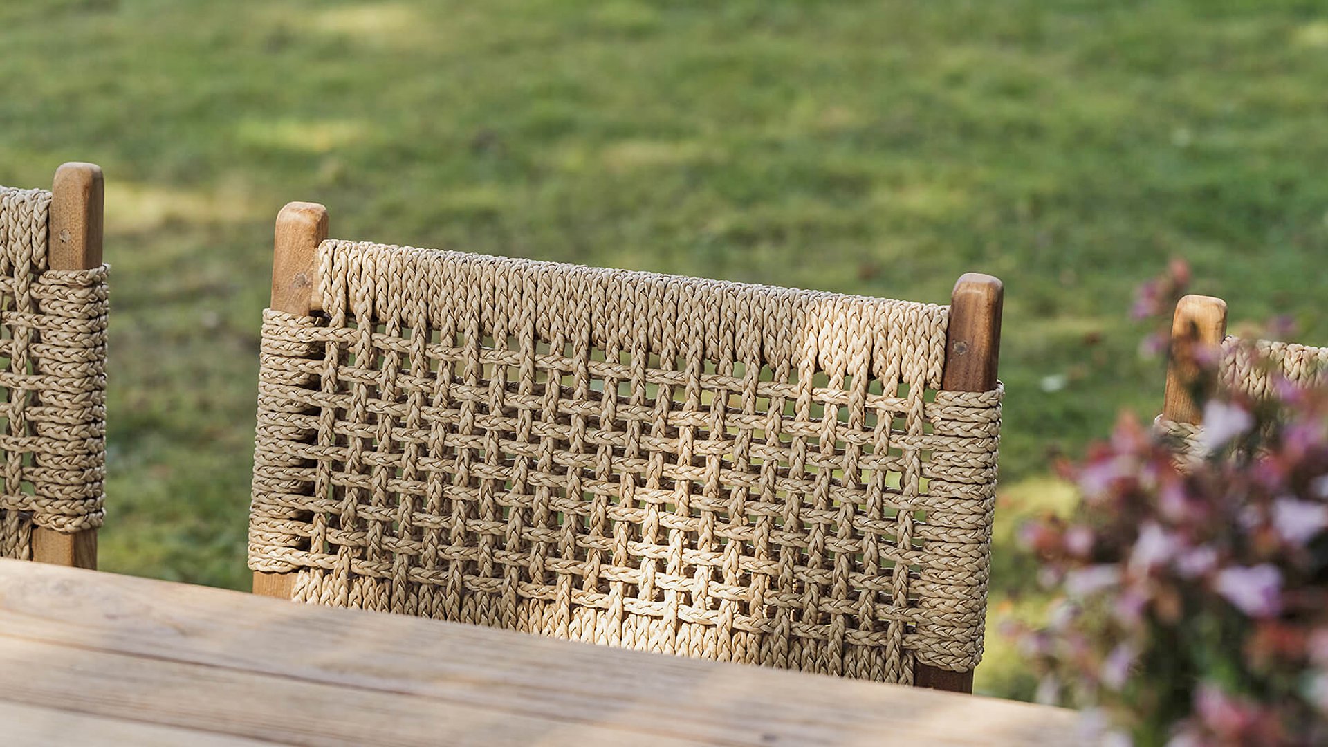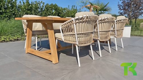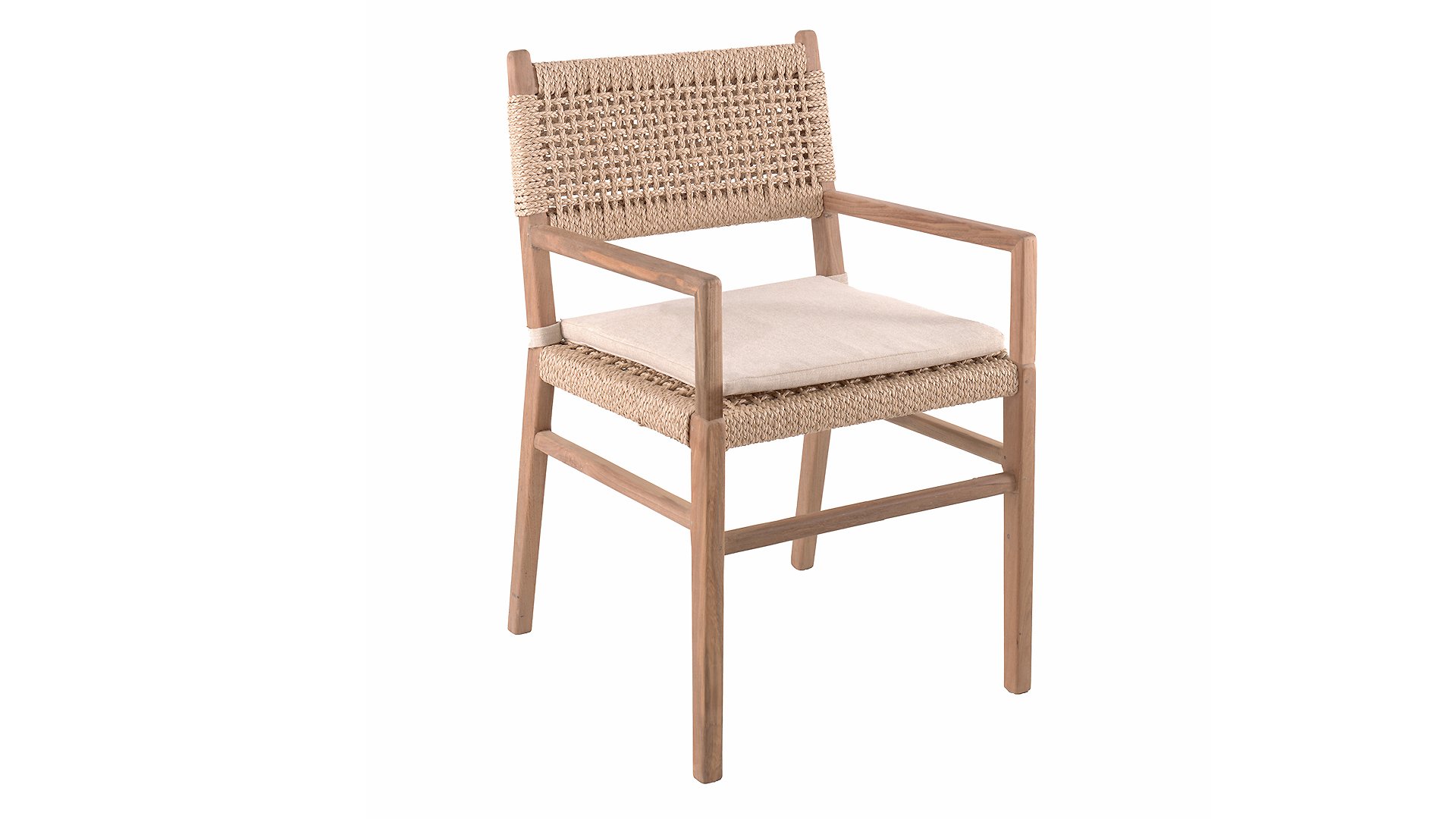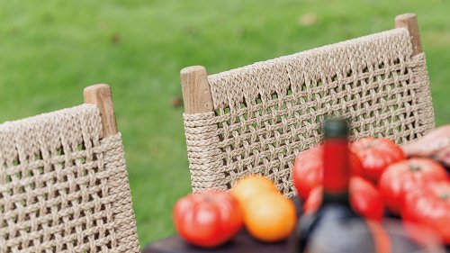 Was den Menorca Gartenstuhl einzigartig macht, ist die Verwendung von recyceltem Teakholz. Jedes Holzstück erzählt seine eigene Geschichte und sorgt für eine lebendige, authentische Ausstrahlung. In Kombination mit dem handgeflochtenen Geflecht entsteht eine natürliche Harmonie voller Wärme und Charakter.
